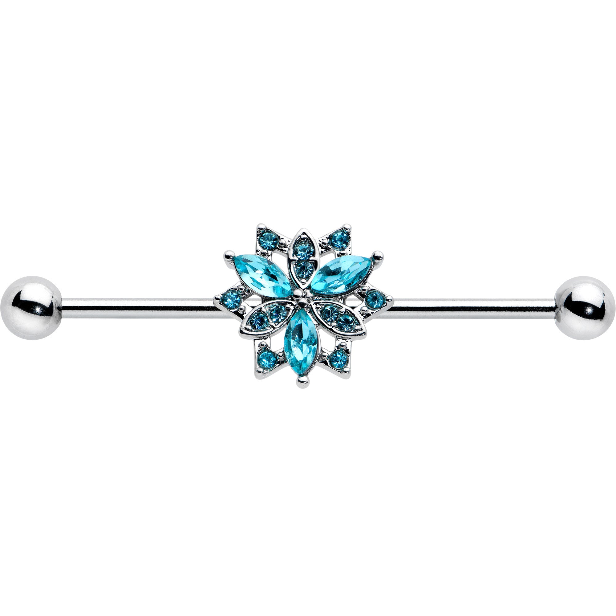 14 Gauge Blue CZ Gem Ornate Snowflake Industrial Barbell 38mm