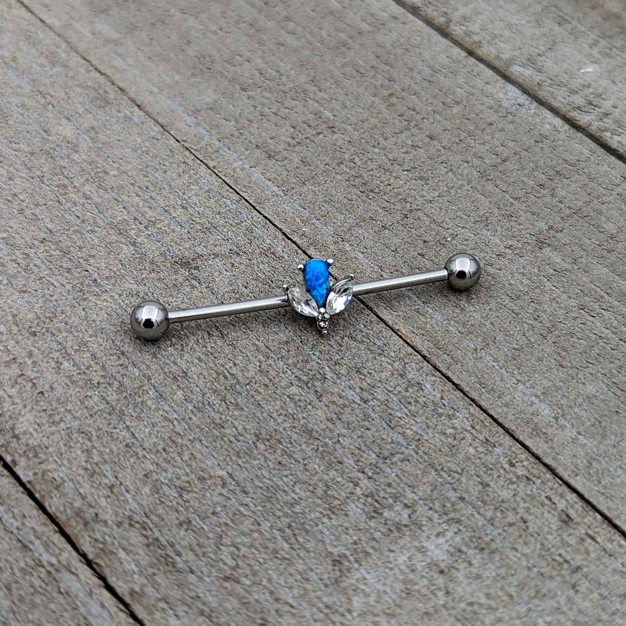 14G Blue Faux Opal Style Flower Industrial Barbell 38mm