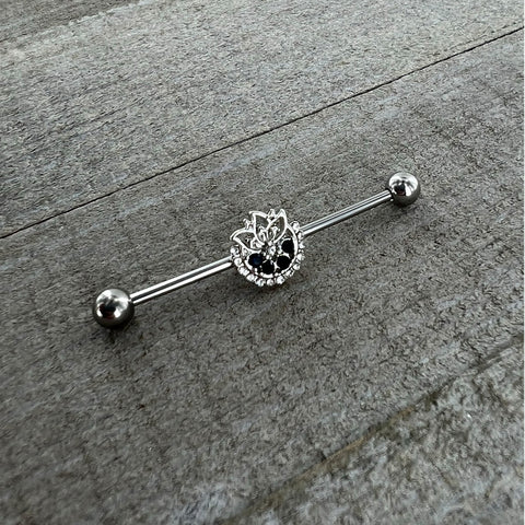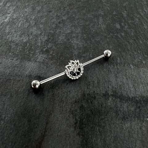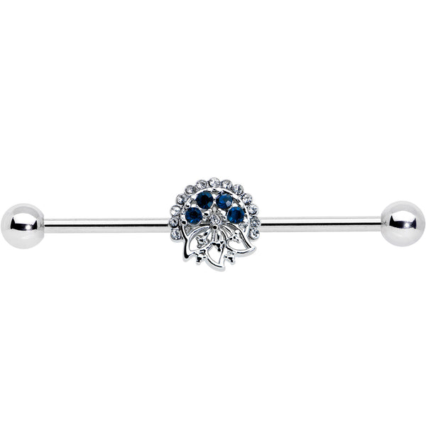 14 Gauge Blue Gem Abstract Arch Industrial Barbell 38mm
