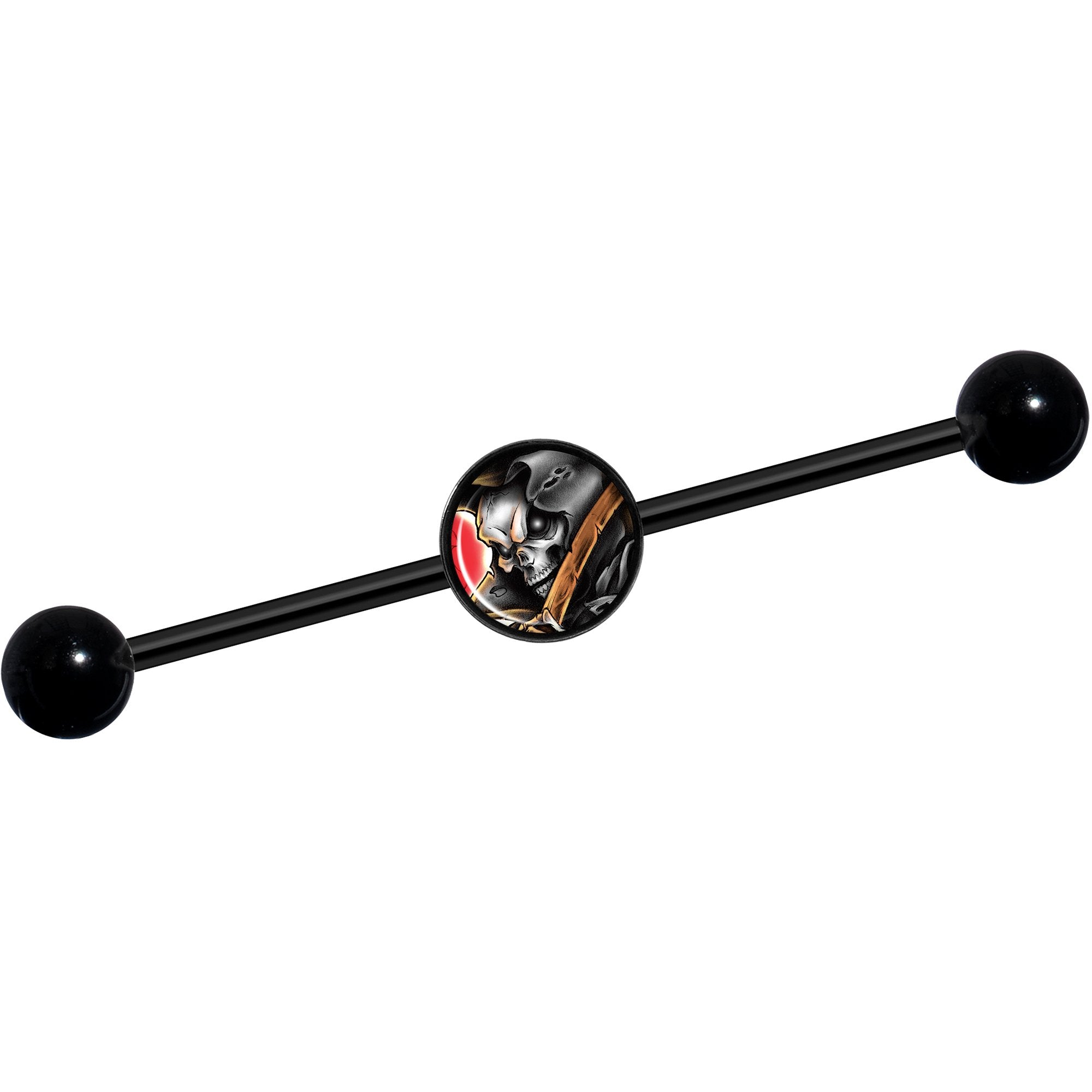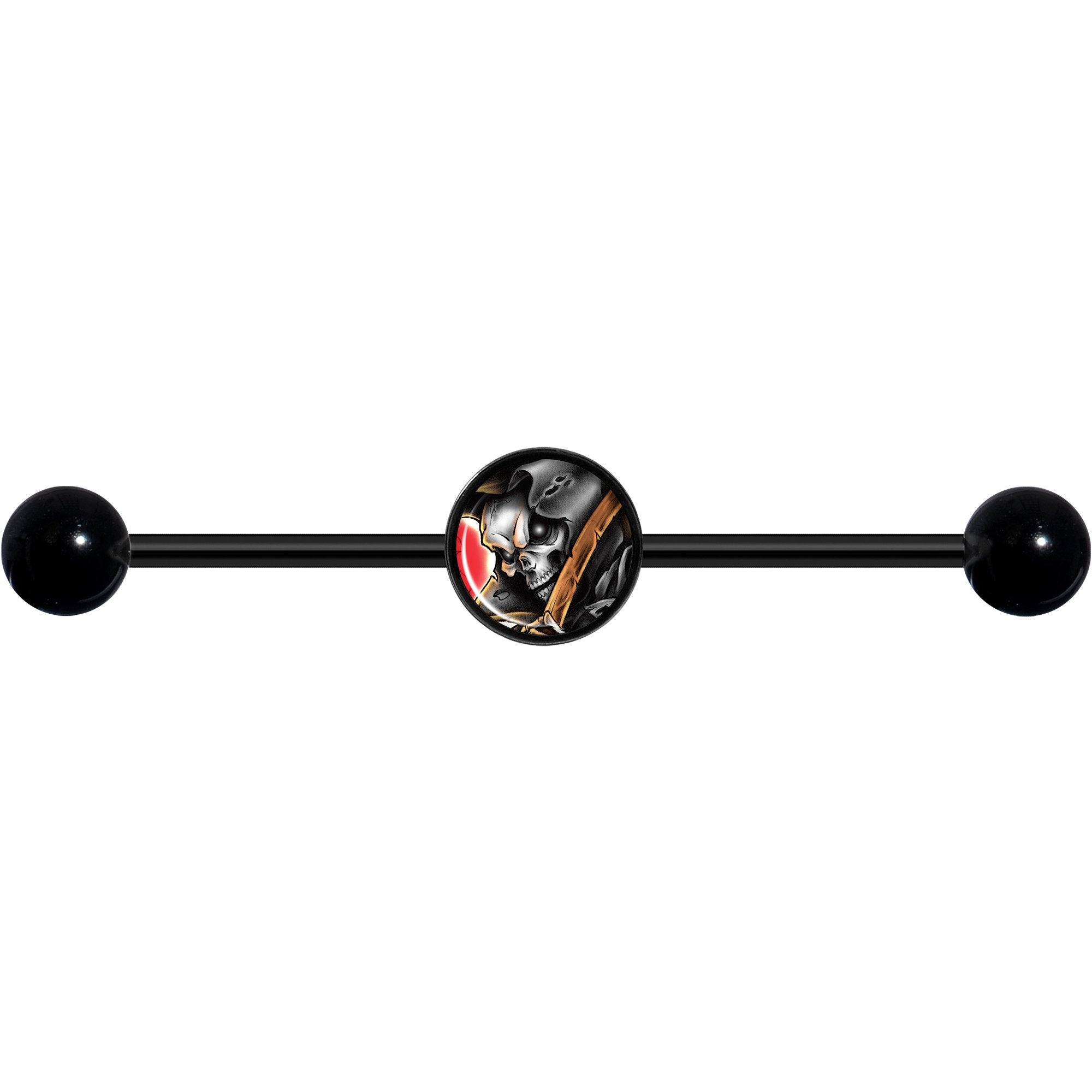 14G Wake the Dead Grim Reaper Halloween Black Industrial Barbell 37mm