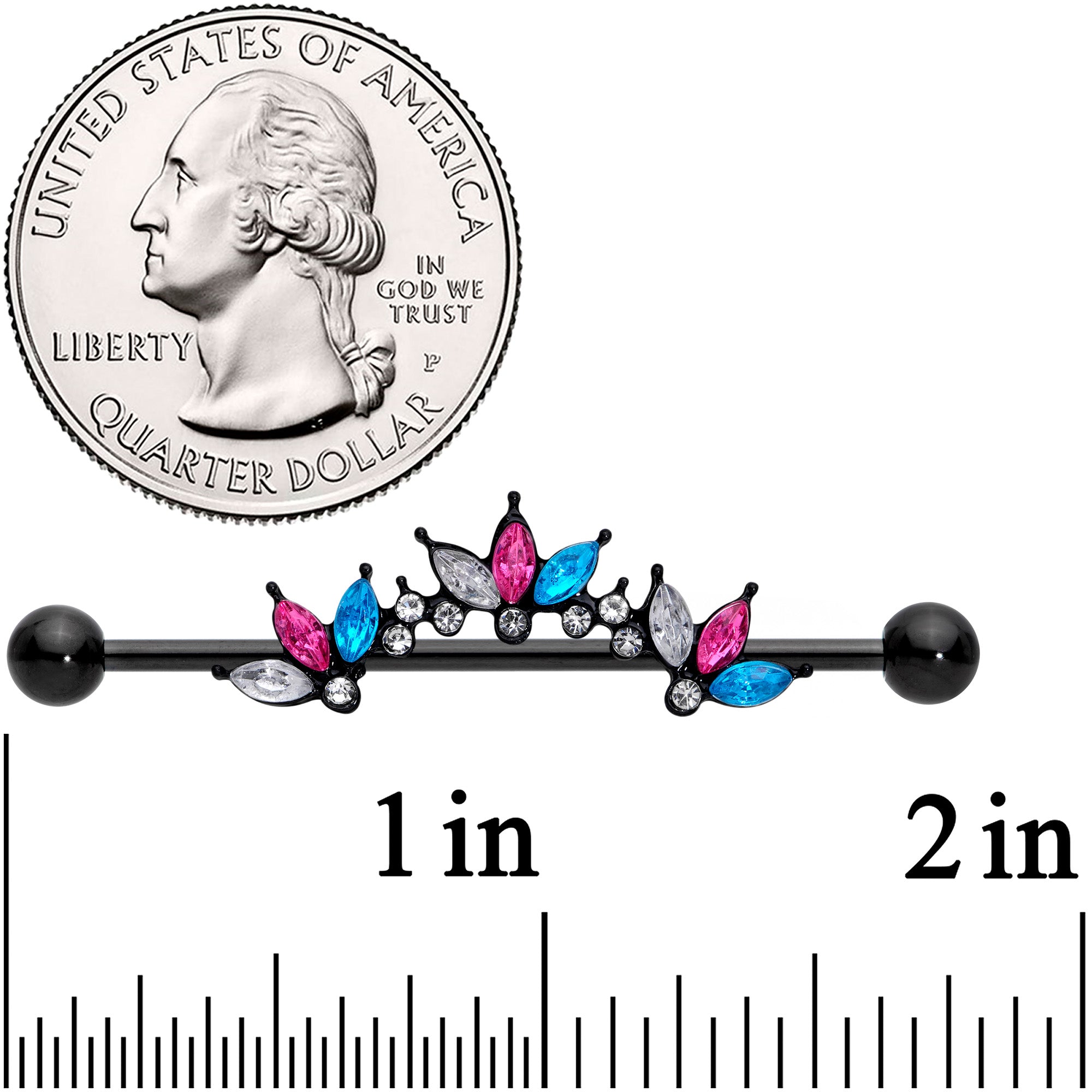 14 Gauge Clear Aqua Pink Accent Black Clusters Industrial Barbell 38mm