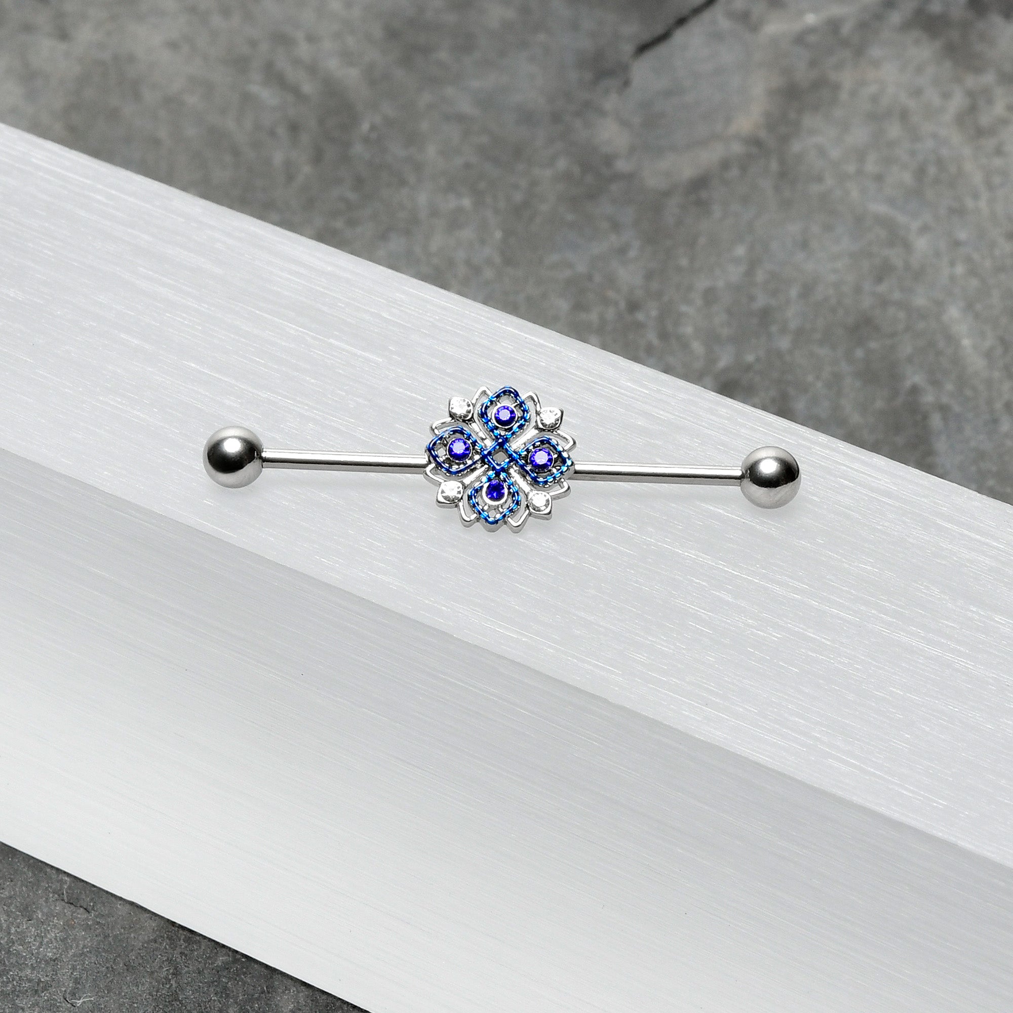 14 Gauge Clear Blue Gem Embellished Cross Industrial Barbell 38mm