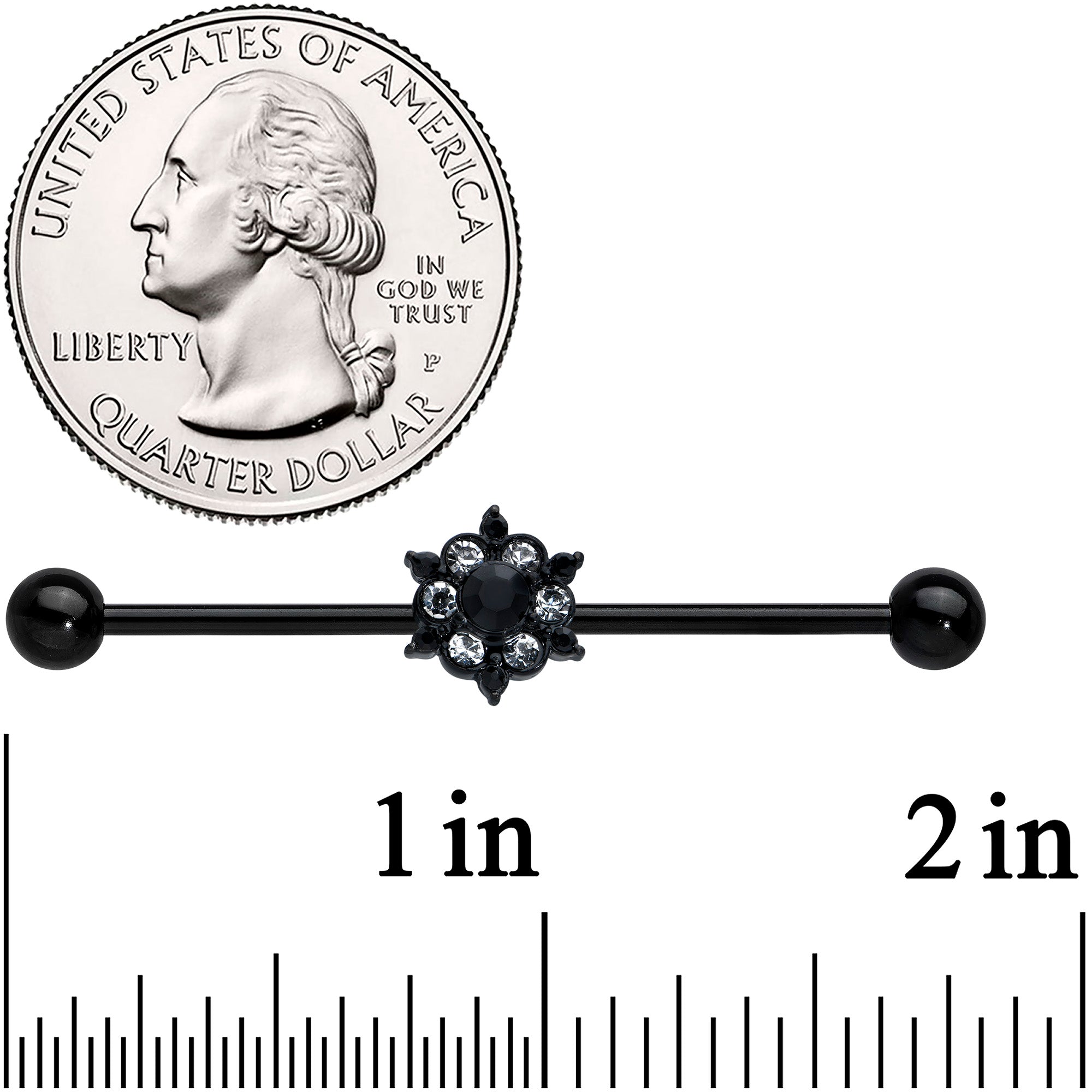 14 Gauge Clear CZ Gem Black Abstract Sun Industrial Barbell 38mm