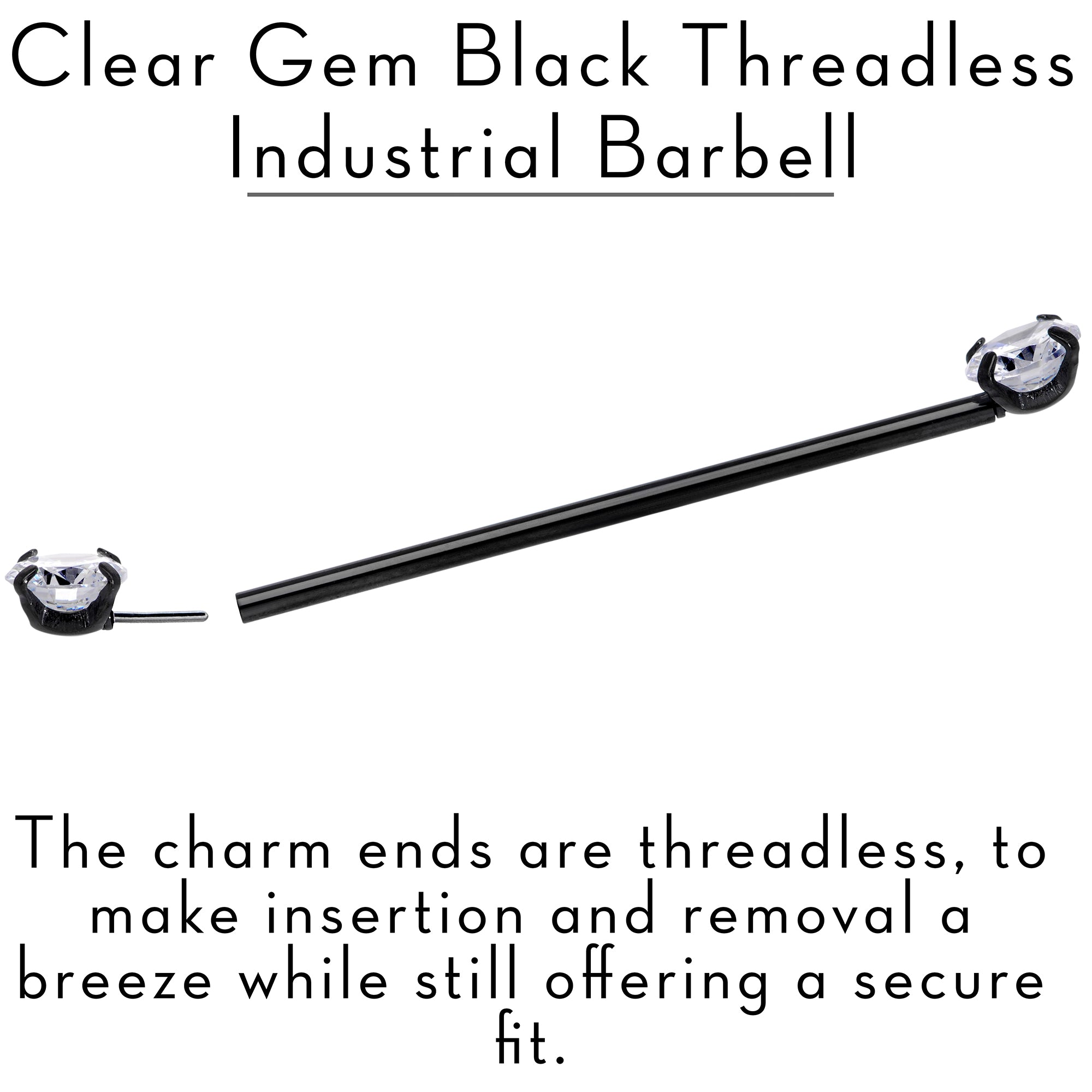 14G Clear CZ Gem Black Threadless Industrial Barbell 38mm