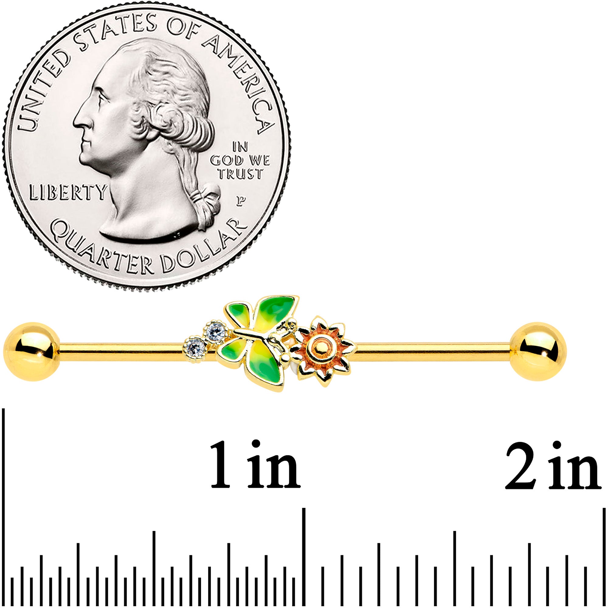 14 Gauge Clear CZ Gem Gold Tone Sun Butterfly Industrial Barbell 38mm