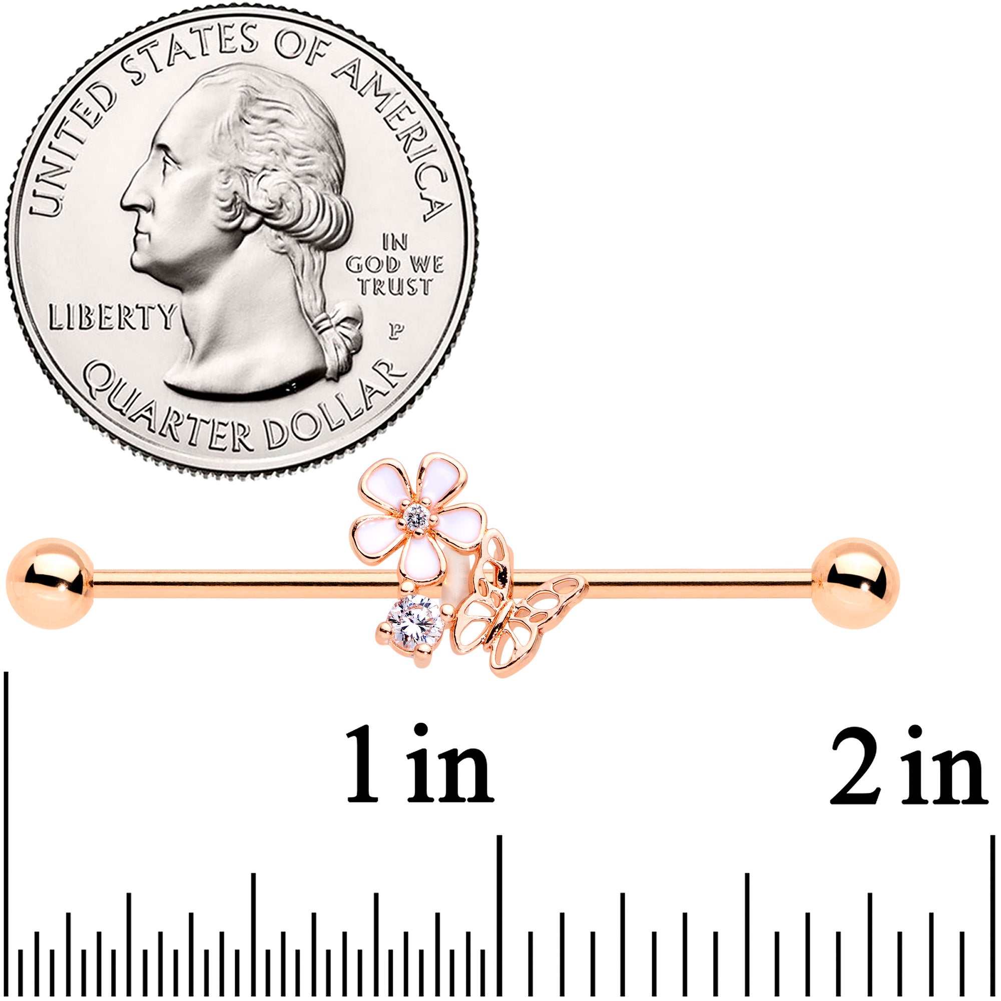 14 Gauge Clear CZ Gem Rose Gold Tone Butterfly Industrial Barbell 38mm