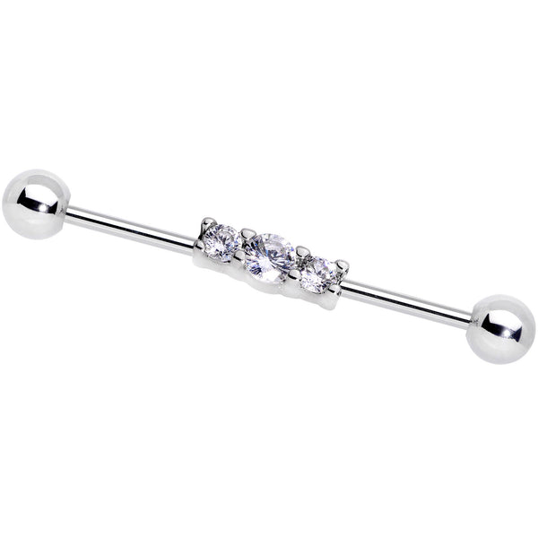 14 Gauge Clear CZ Gem Trifecta Straight Industrial Barbell 30mm