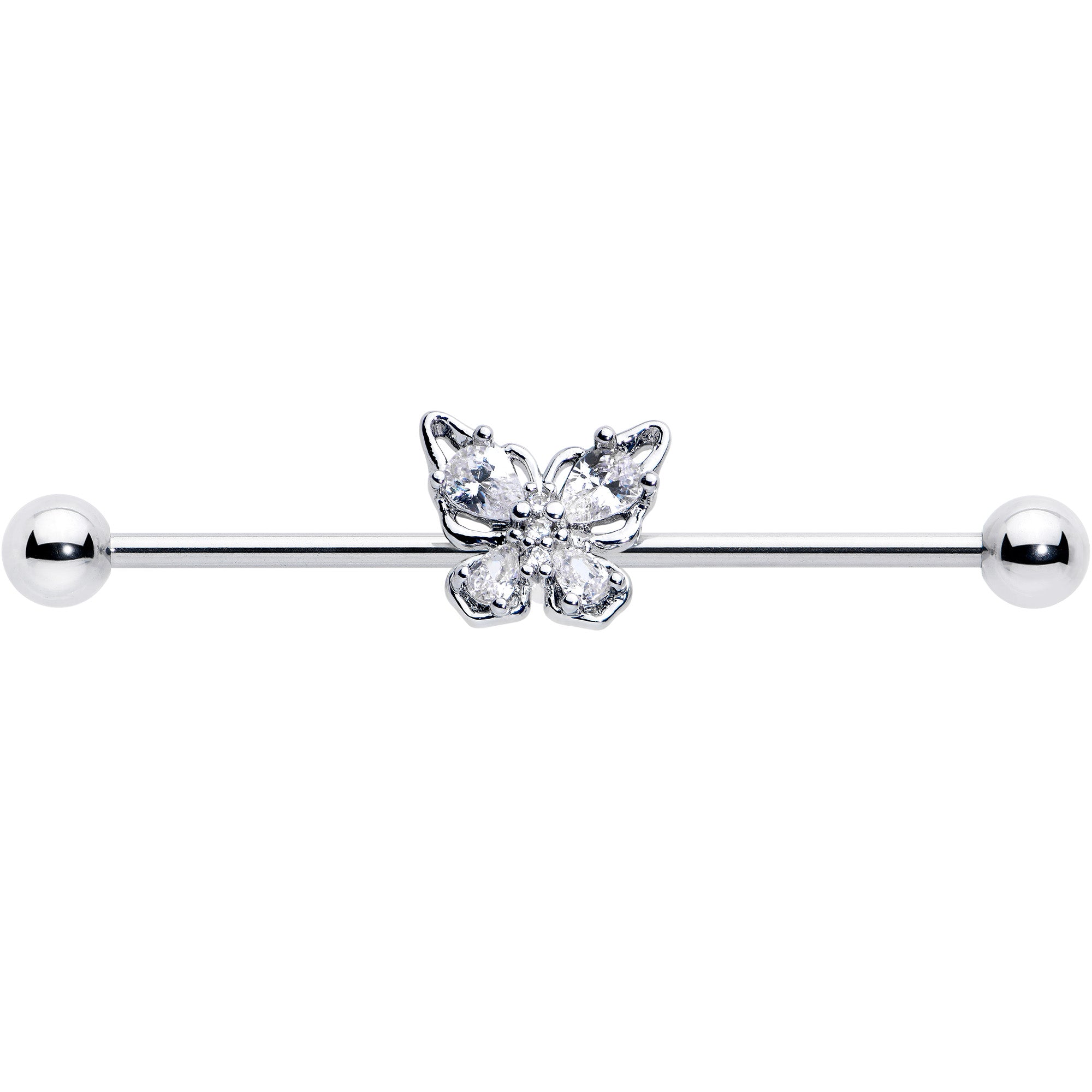 14 Gauge Clear Gem Baroque Beauty Butterfly Industrial Barbell 38mm