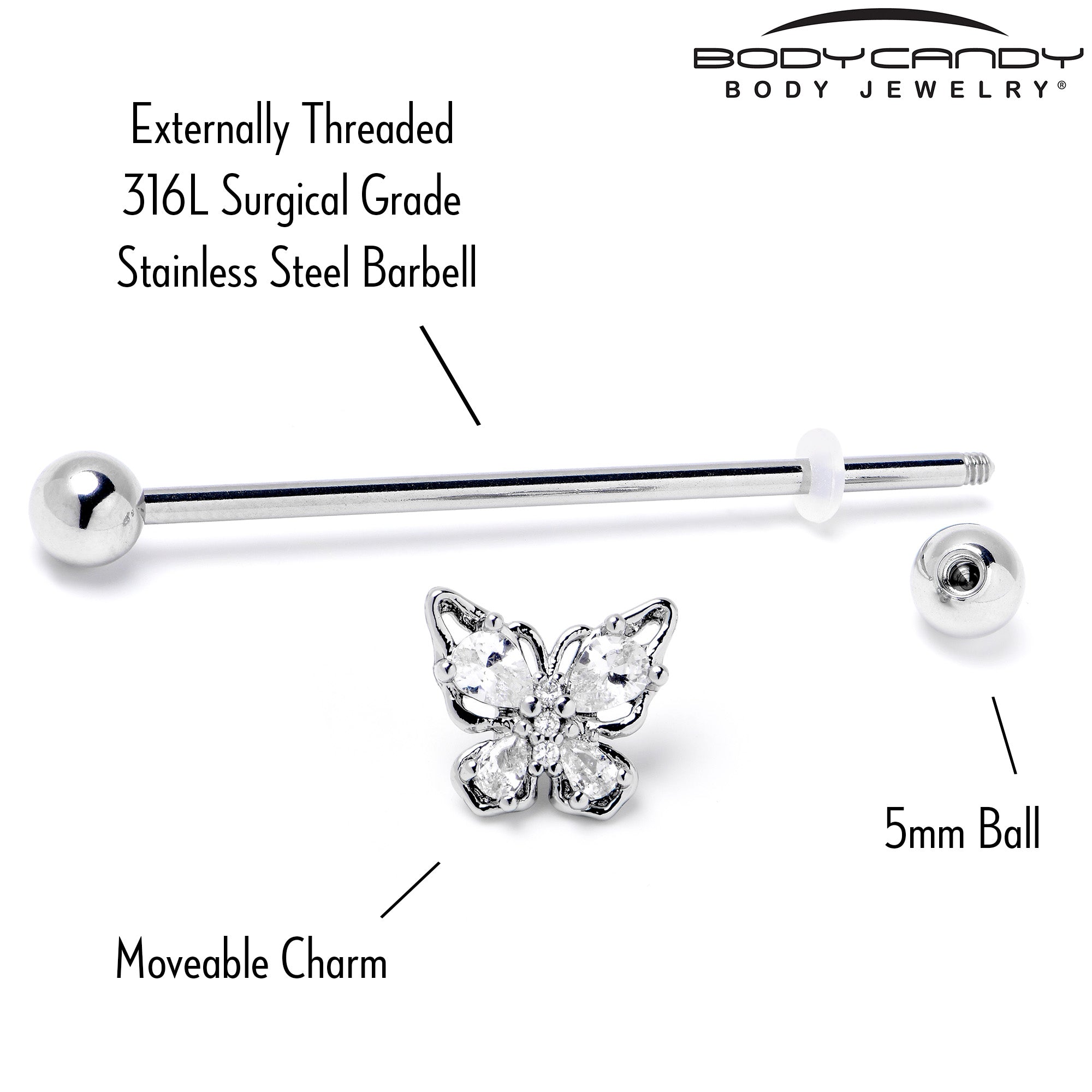 14G Clear Gem Baroque Beauty Butterfly Industrial Barbell 38mm