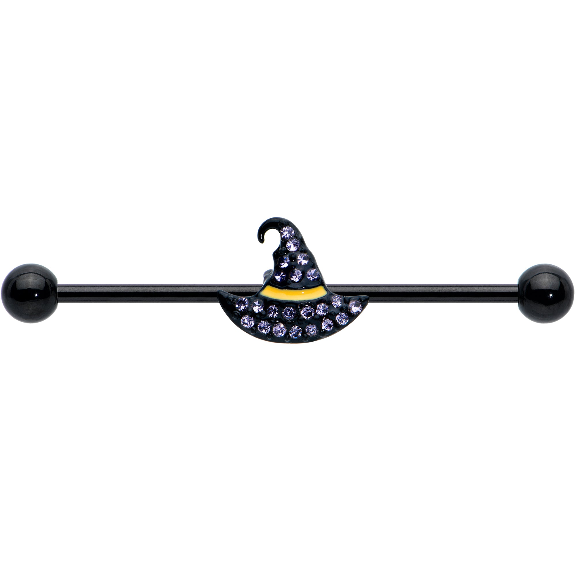 14G Clear Gem Black Witch Hat Halloween Industrial Barbell 38mm