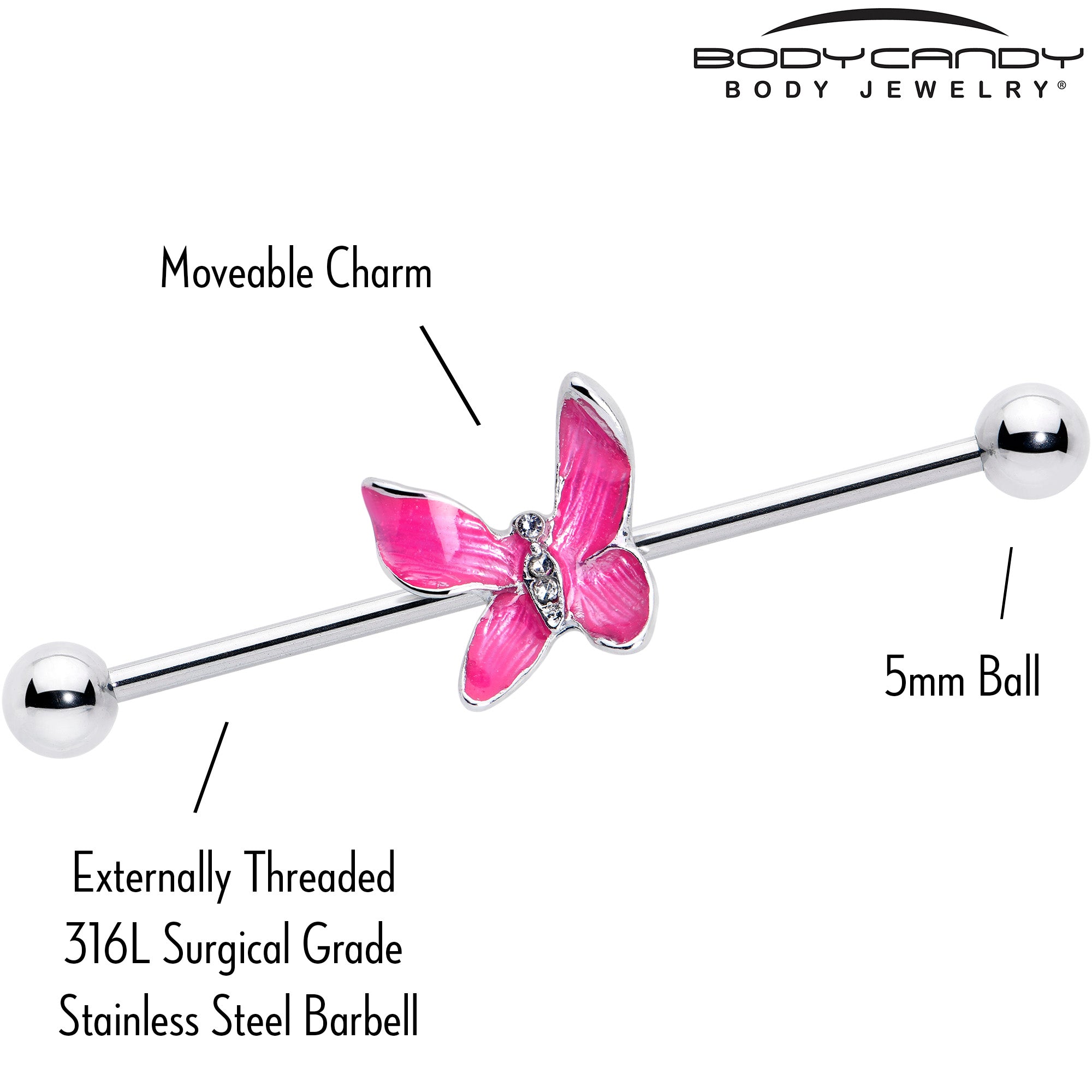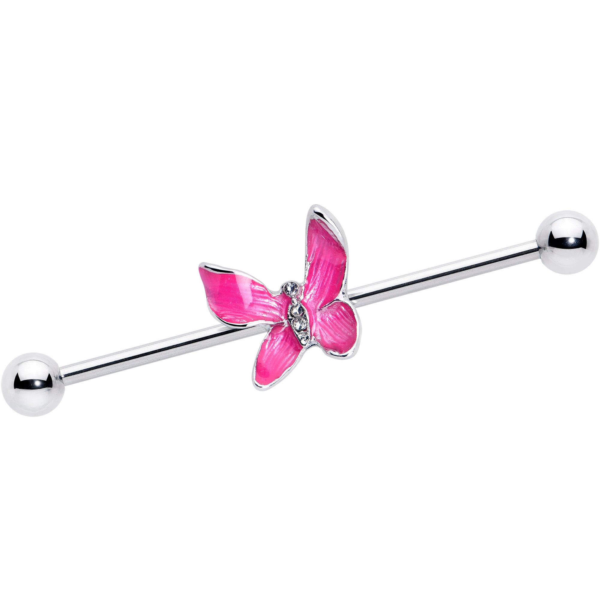 14 Gauge Clear Gem Chunky Butterfly Pink Industrial Barbell 38mm