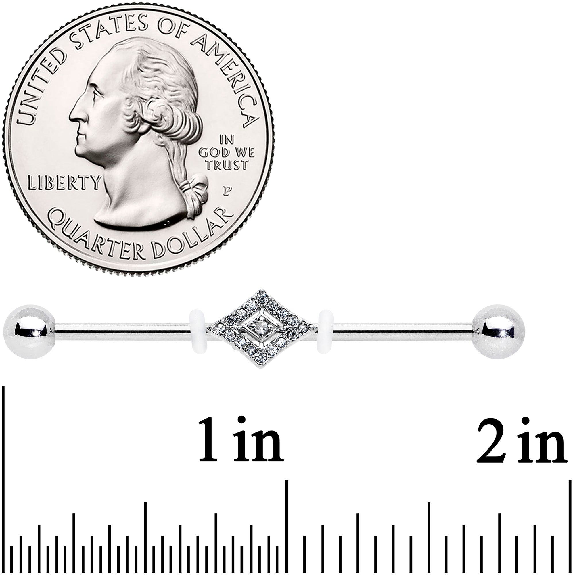 14 Gauge Clear Gem Double Rhombus Deco Industrial Barbell 38mm