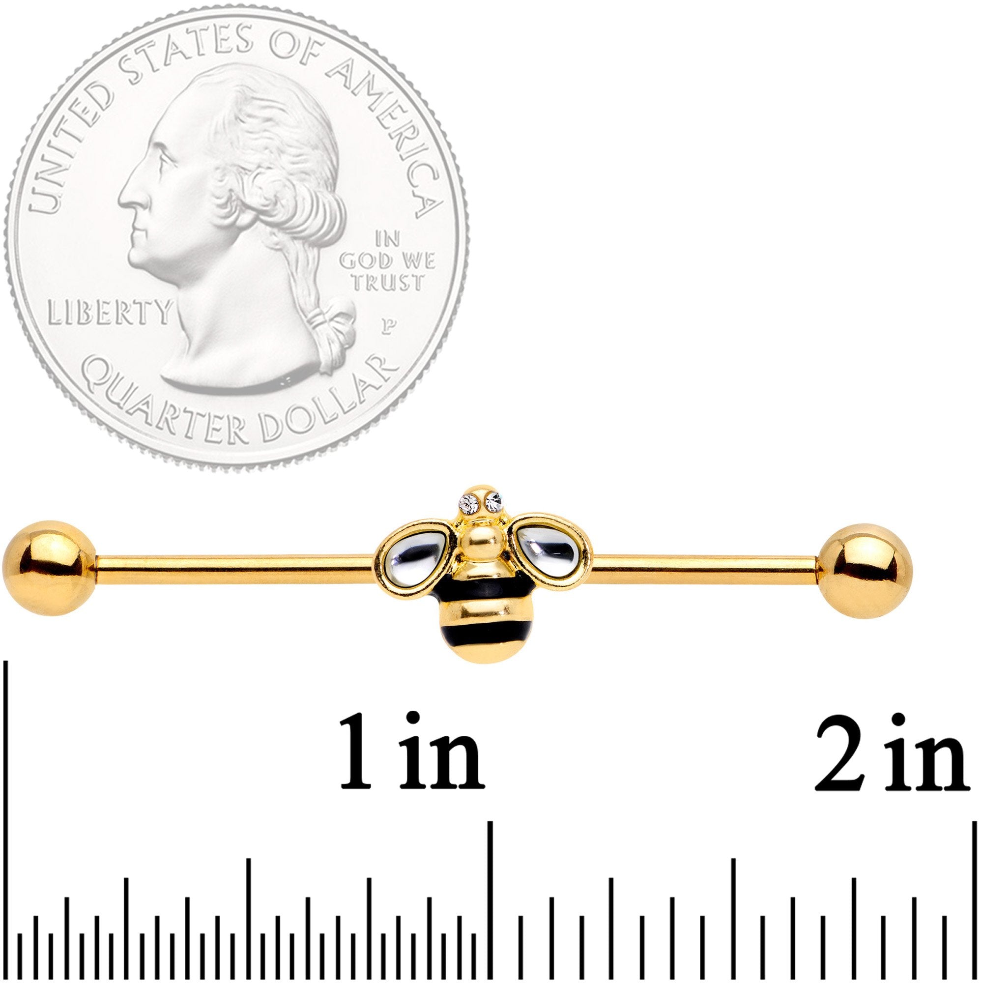 14 Gauge Clear Gem Gold Tone Bumblebee Bling Industrial Barbell 38mm
