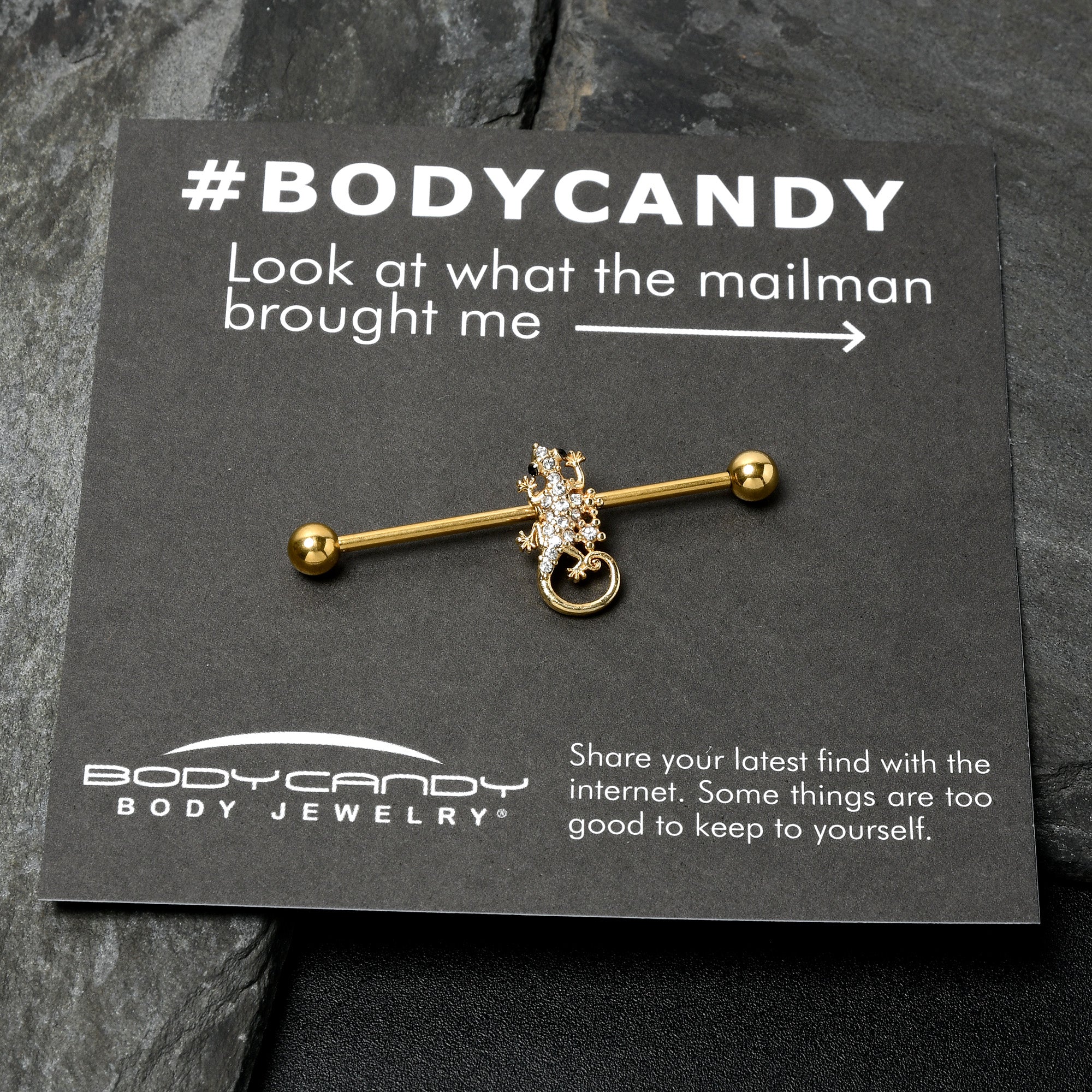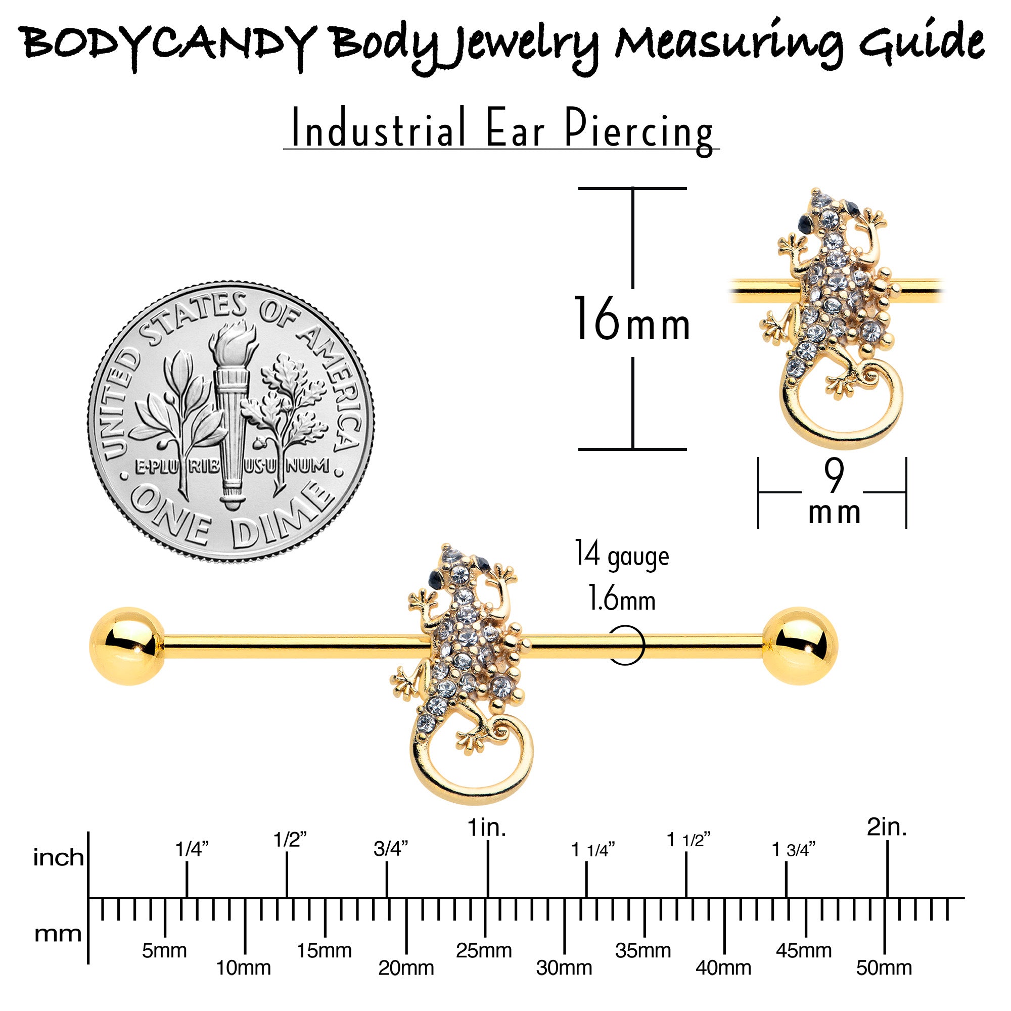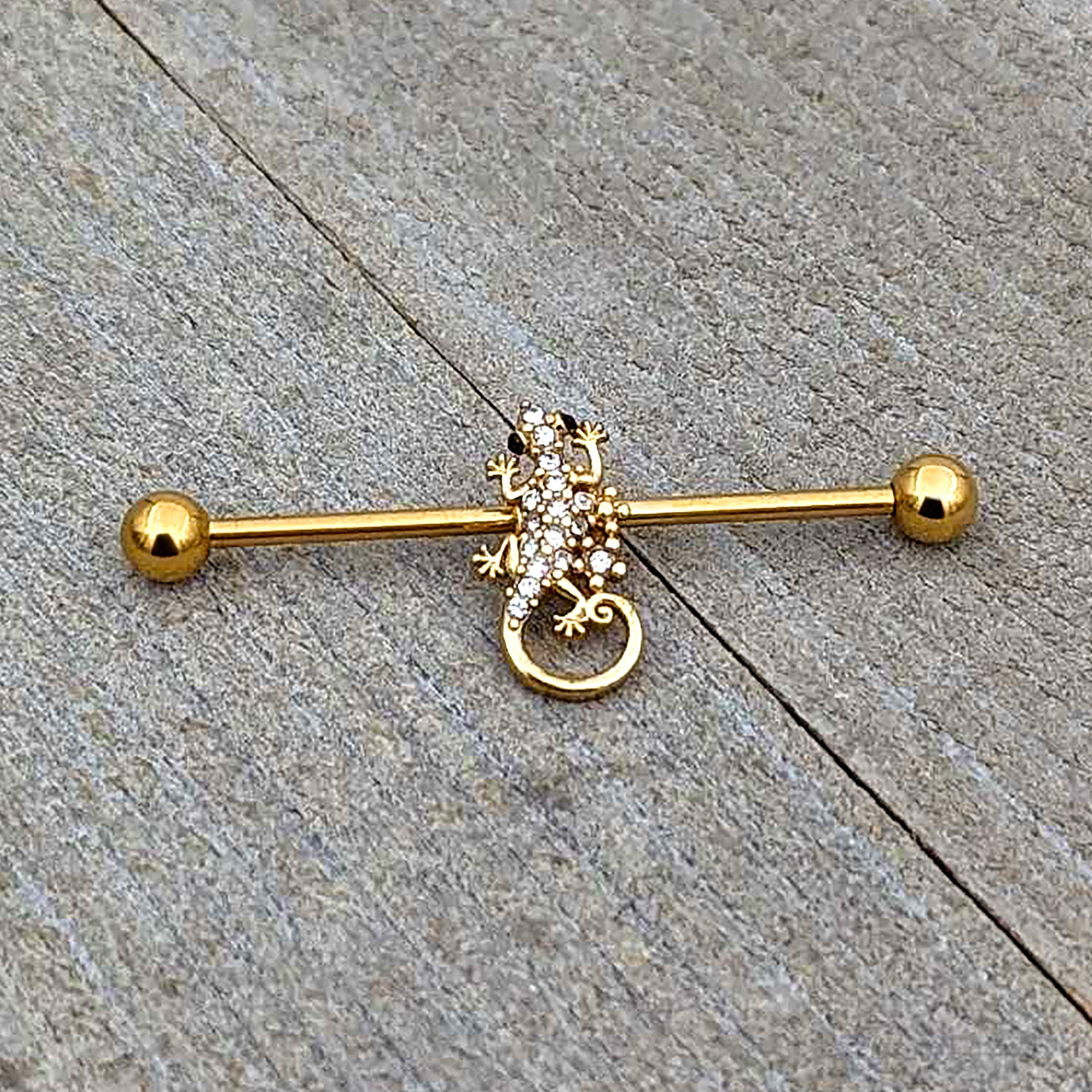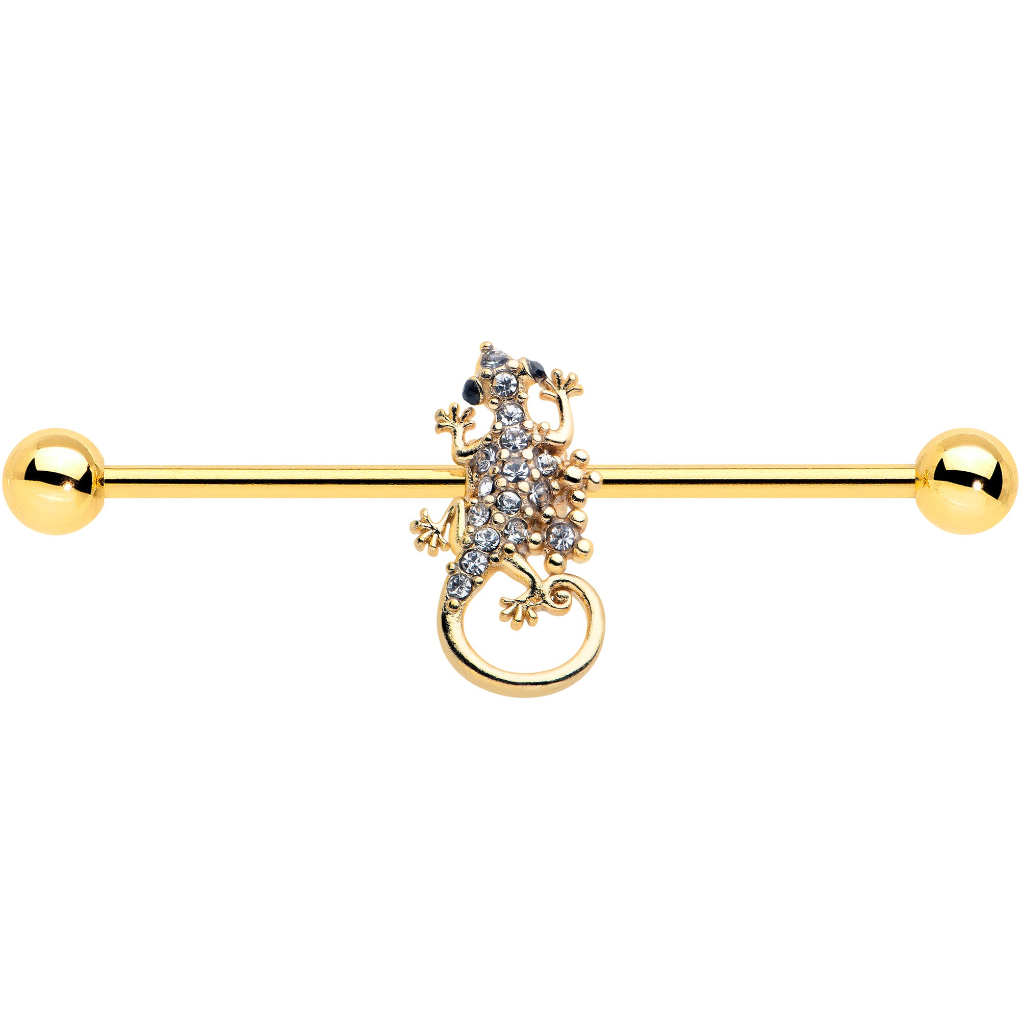 14G Clear Gem Gold Tone Luscious Lizard Industrial Barbell 38mm