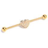 14G Clear Gem Gold Tone Ultra Luxe Heart Industrial Barbell 38mm