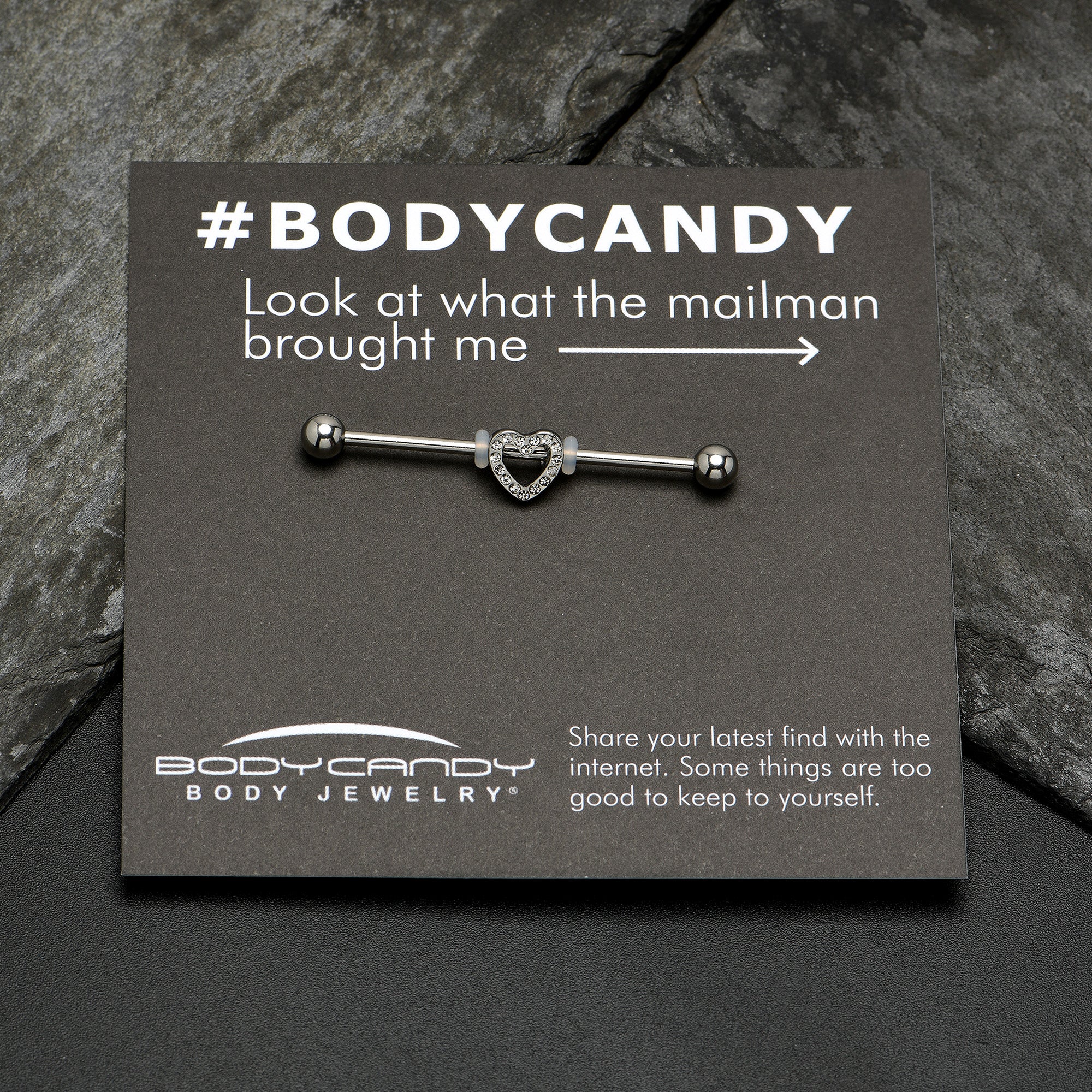 14 Gauge Clear Gem Open Heart Valentine Industrial Barbell 38mm