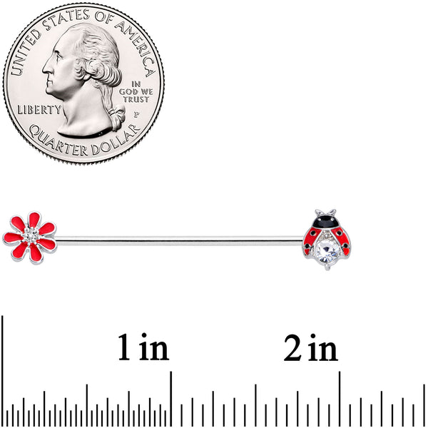 14 Gauge Clear Gem Red Ladybug Flower Industrial Barbell 38mm