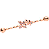 14 Gauge Clear Gem Rose Gold Tone Butterfly Industrial Barbell 38mm