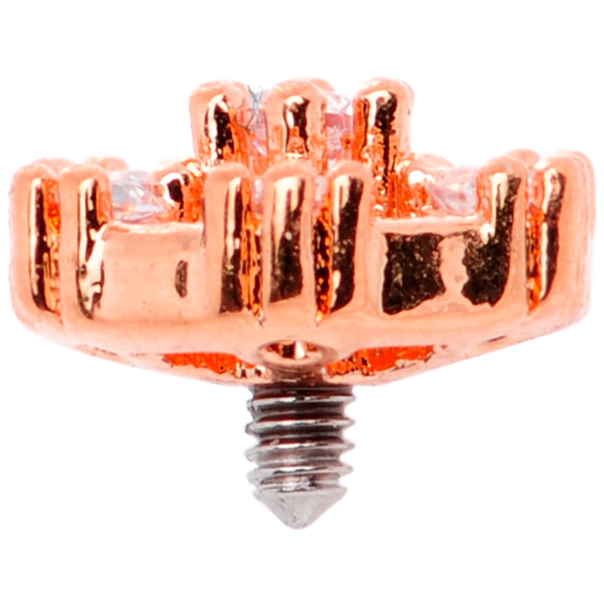 14 Gauge Clear Gem Rose Tone Externally Threaded Dermal Anchor Top