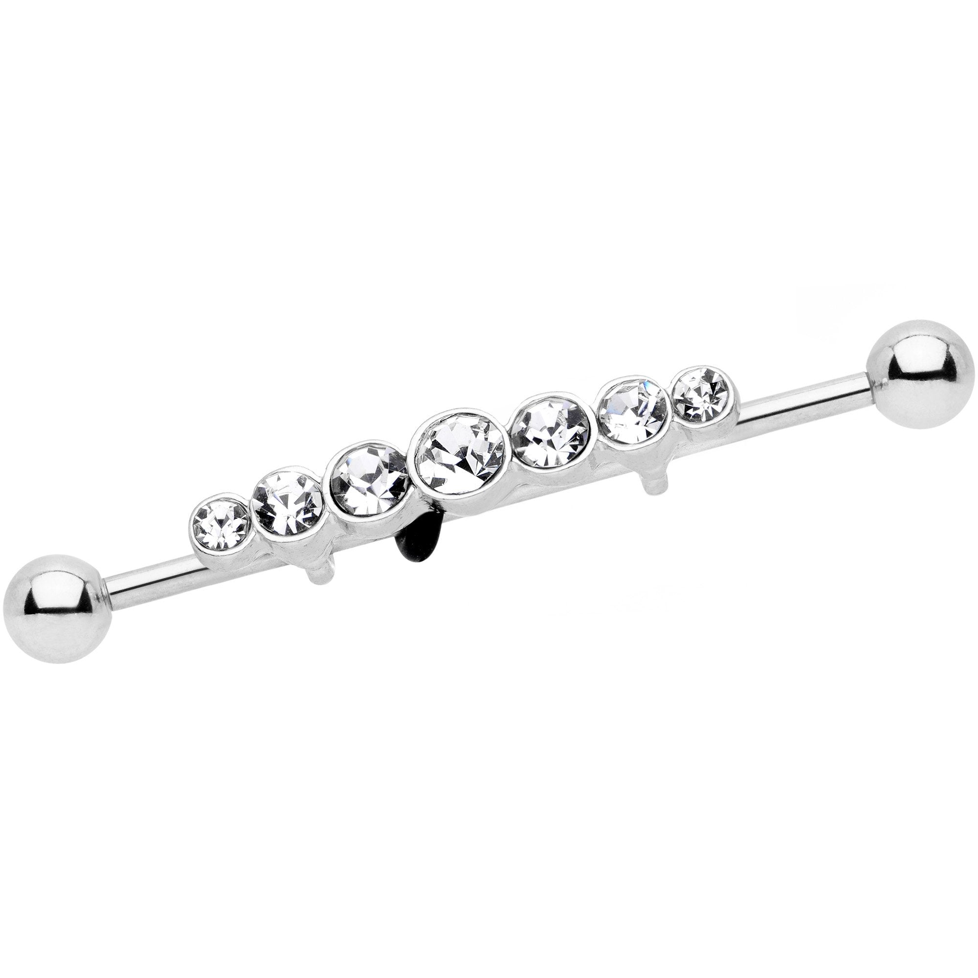Don't deny yourself anything. Get this decadent piece of body jewelry if you love dressing up your double helix and don't care if people stare. Made with a 1 1/2" durable 316L surgical grade stainless steel straight barbell, this 14 gauge barbell earring features a moveable charm set with a line of seven clear gems that are impossible to ignore.