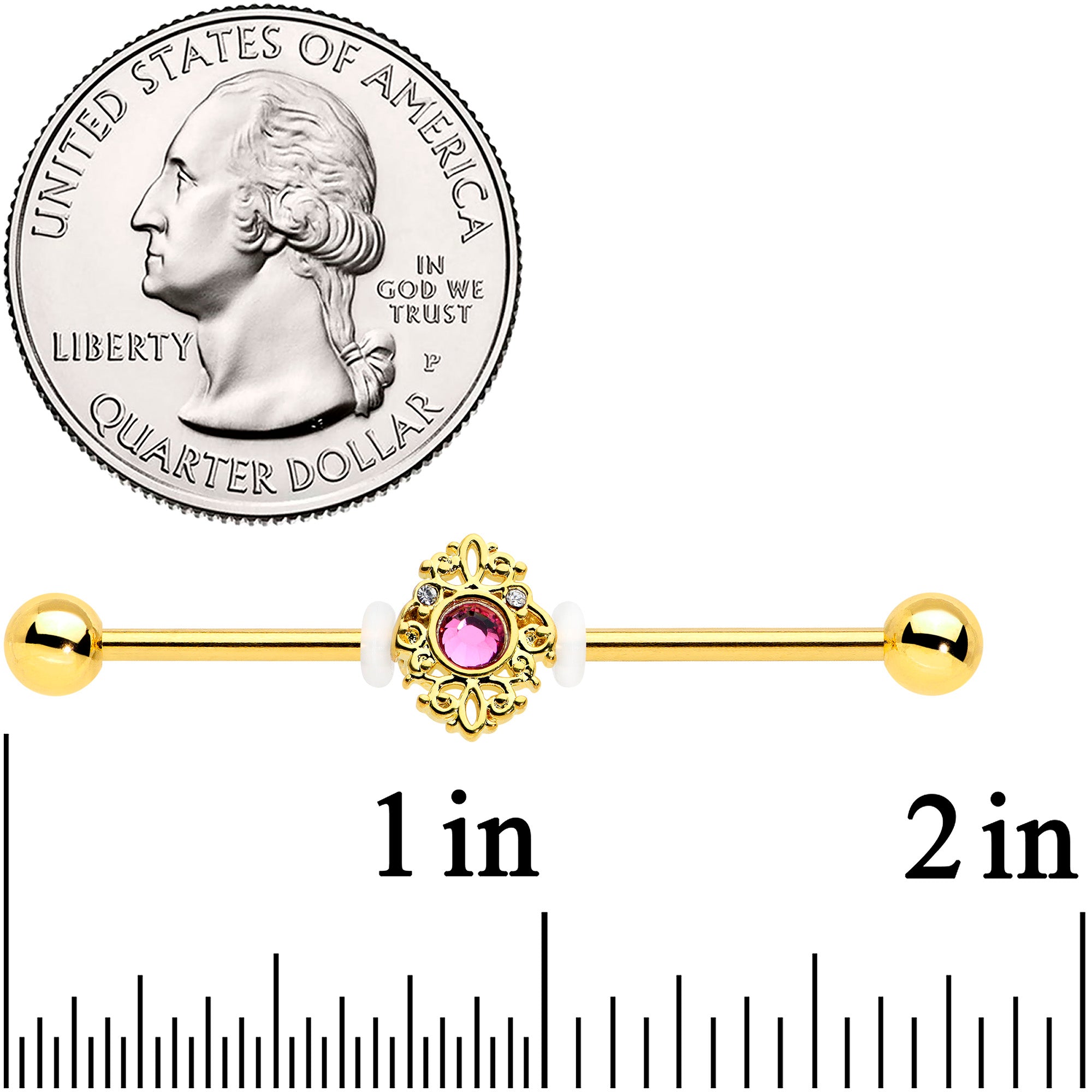14 Gauge Clear Pink Gem Gold Tone Lace Love Industrial Barbell 38mm