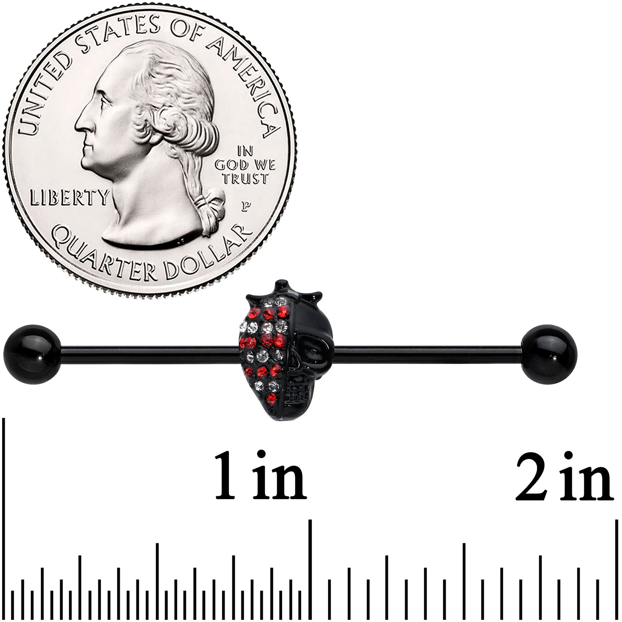 14 Gauge Clear Red Gem Black Skull Halloween Industrial Barbell 38mm