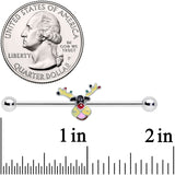 14 Gauge Colorful Reindeer Christmas Industrial Barbell 38mm