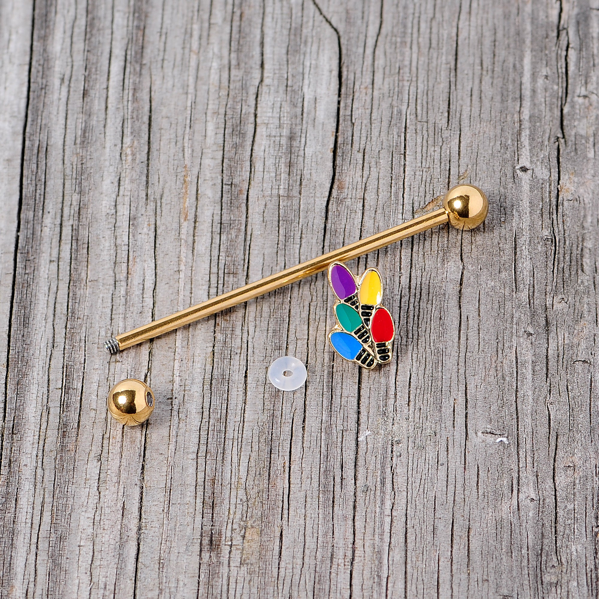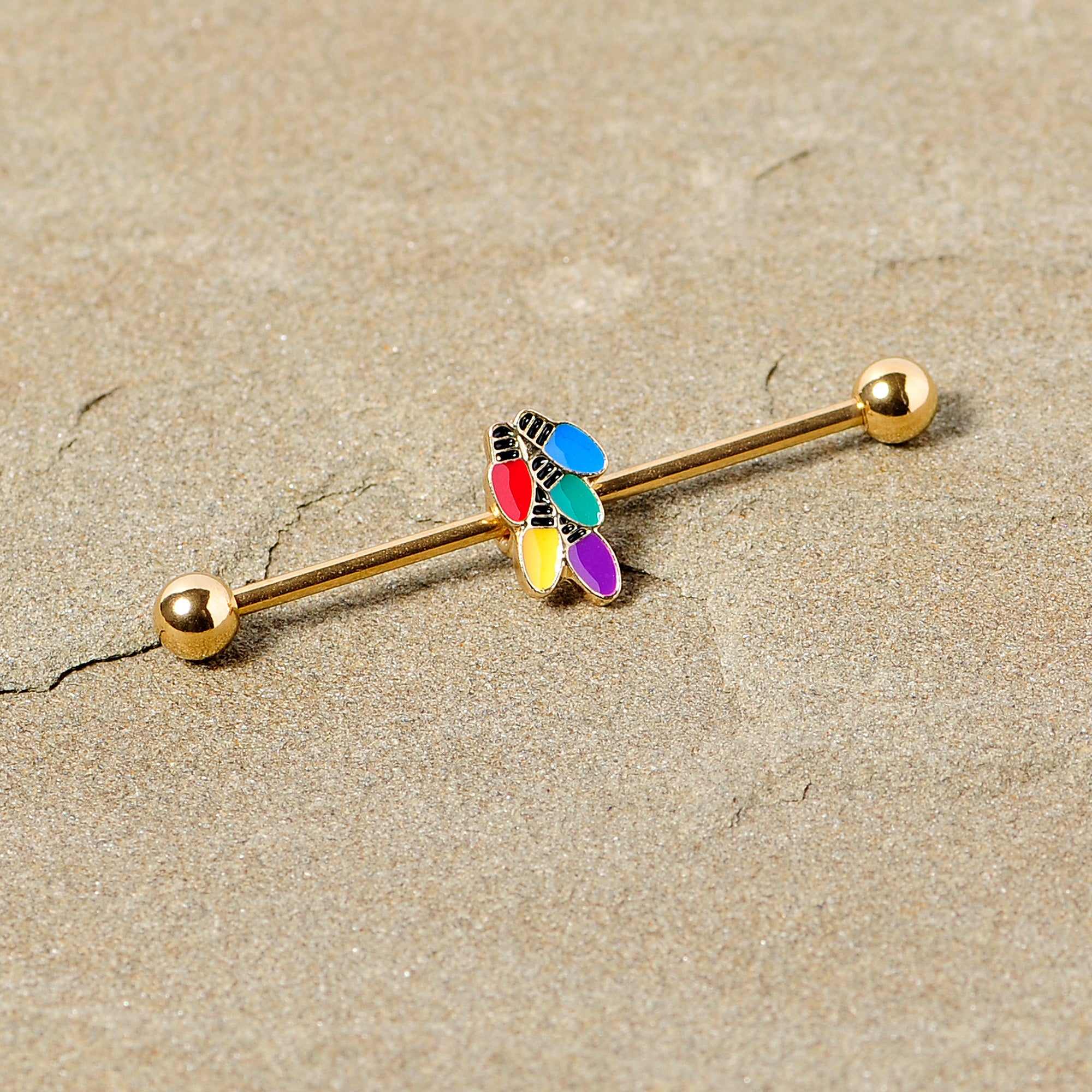 14G Gold Tone Christmas Lights Industrial Barbell 38mm