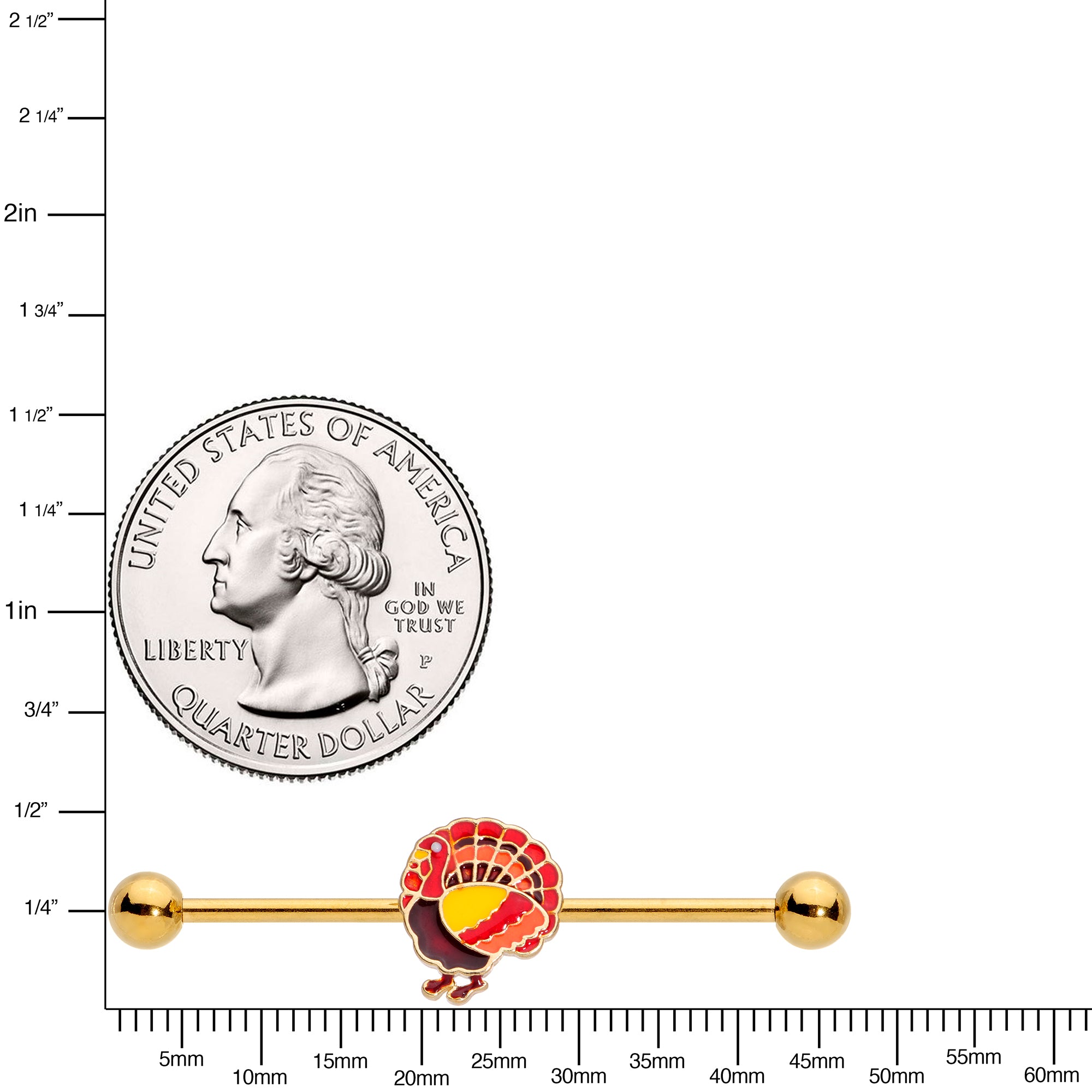 14G Gold Tone Turkey Thanksgiving Industrial Barbell 38mm
