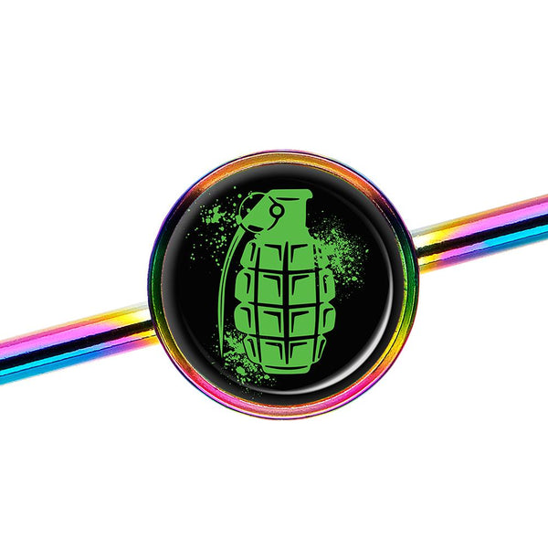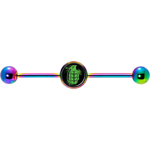 14G Green Grenade Rainbow Industrial Barbell 37mm