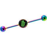 If you love the color green and pop culture images like grenades then this 14 gauge industrial earring is right for you! Made with a 1.45" rainbow anodized over 316L surgical grade stainless steel straight barbell, this straight barbell jewelry features a nonmoving logo inlay charm and 6mm ball ends.