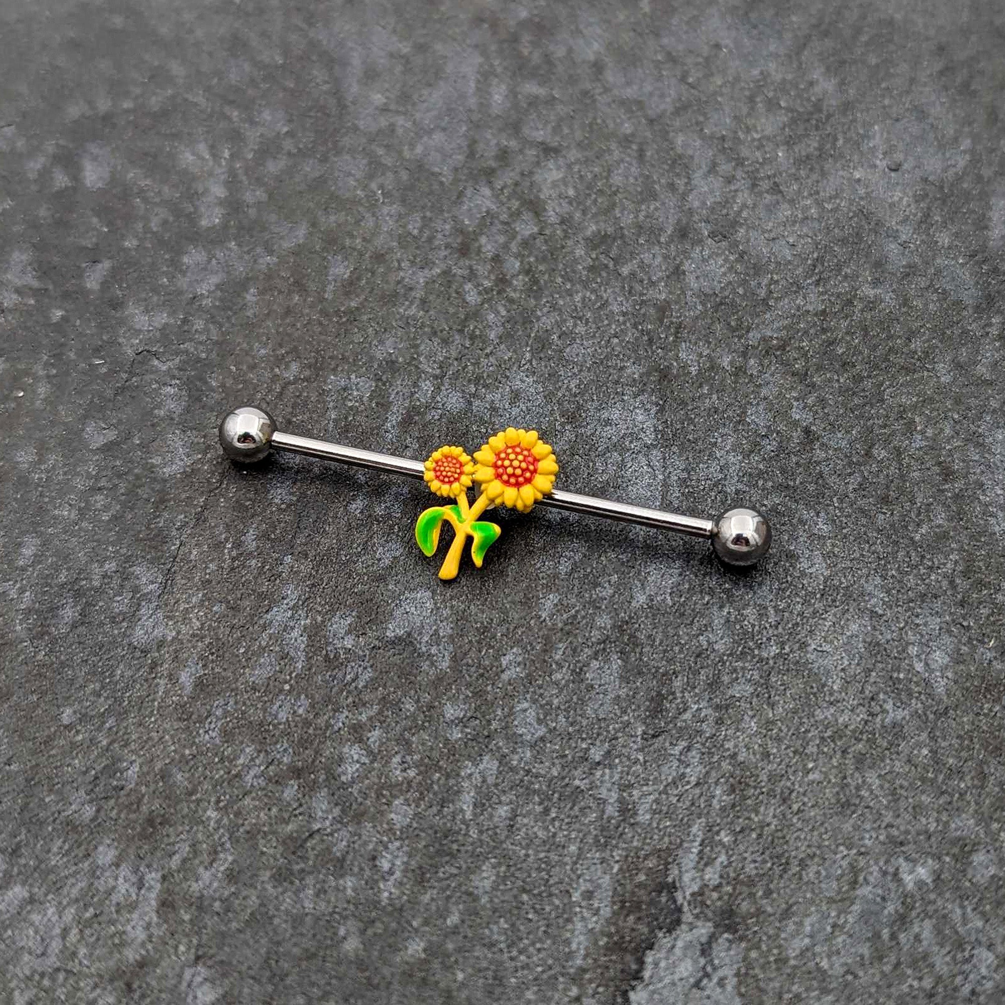 14 Gauge Happy Sunflower Duo Industrial Barbell 38mm