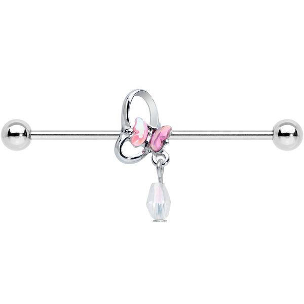 14 Gauge Heart Pink Butterfly Dangle Industrial Barbell 38mm