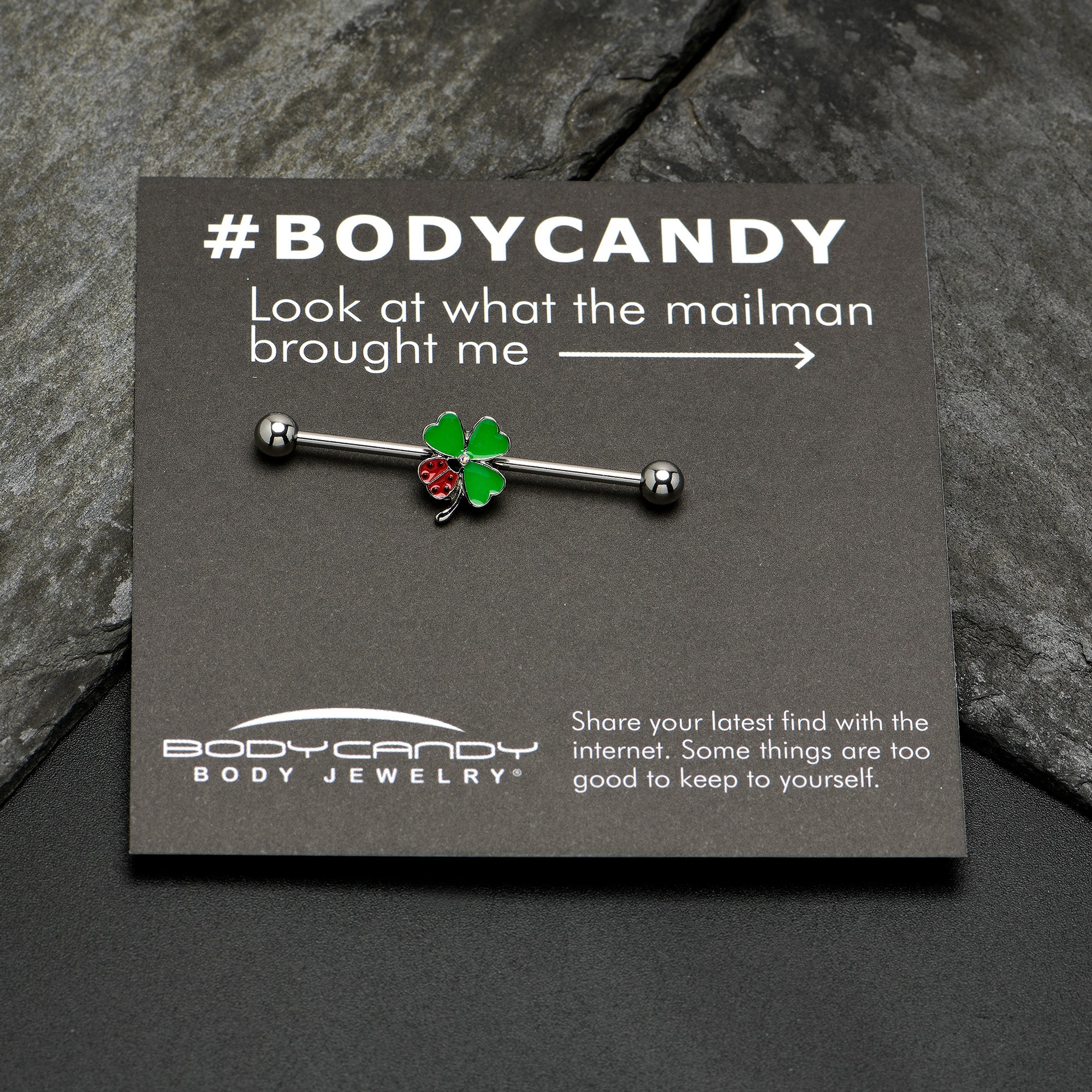 14 Gauge Ladybug Shamrock St Patricks Day Industrial Barbell 38mm
