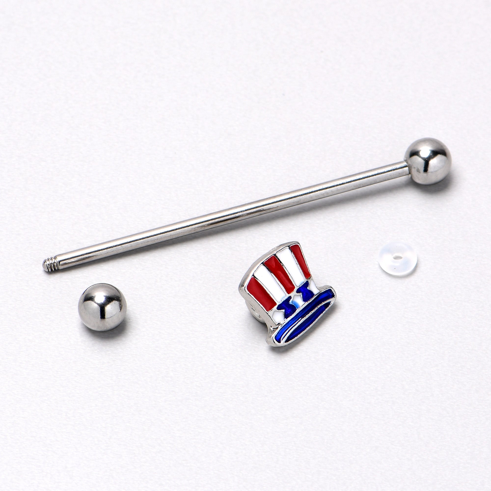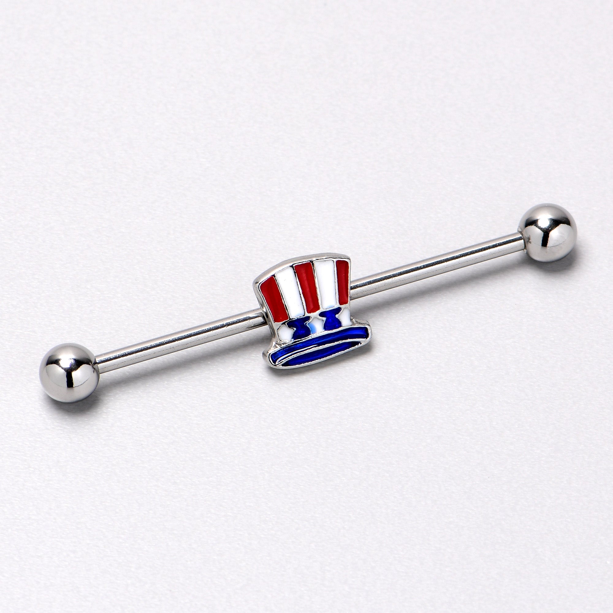 14G Patriotic Uncle Sam Top Hat Industrial Barbell 38mm