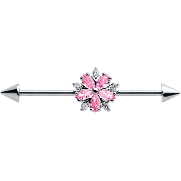 14G Pink CZ Gem Floral Baroque Burst Cone Industrial Barbell 38mm
