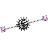 14G Pink CZ Steel Celestial Sun and Moon Industrial Barbell 38mm