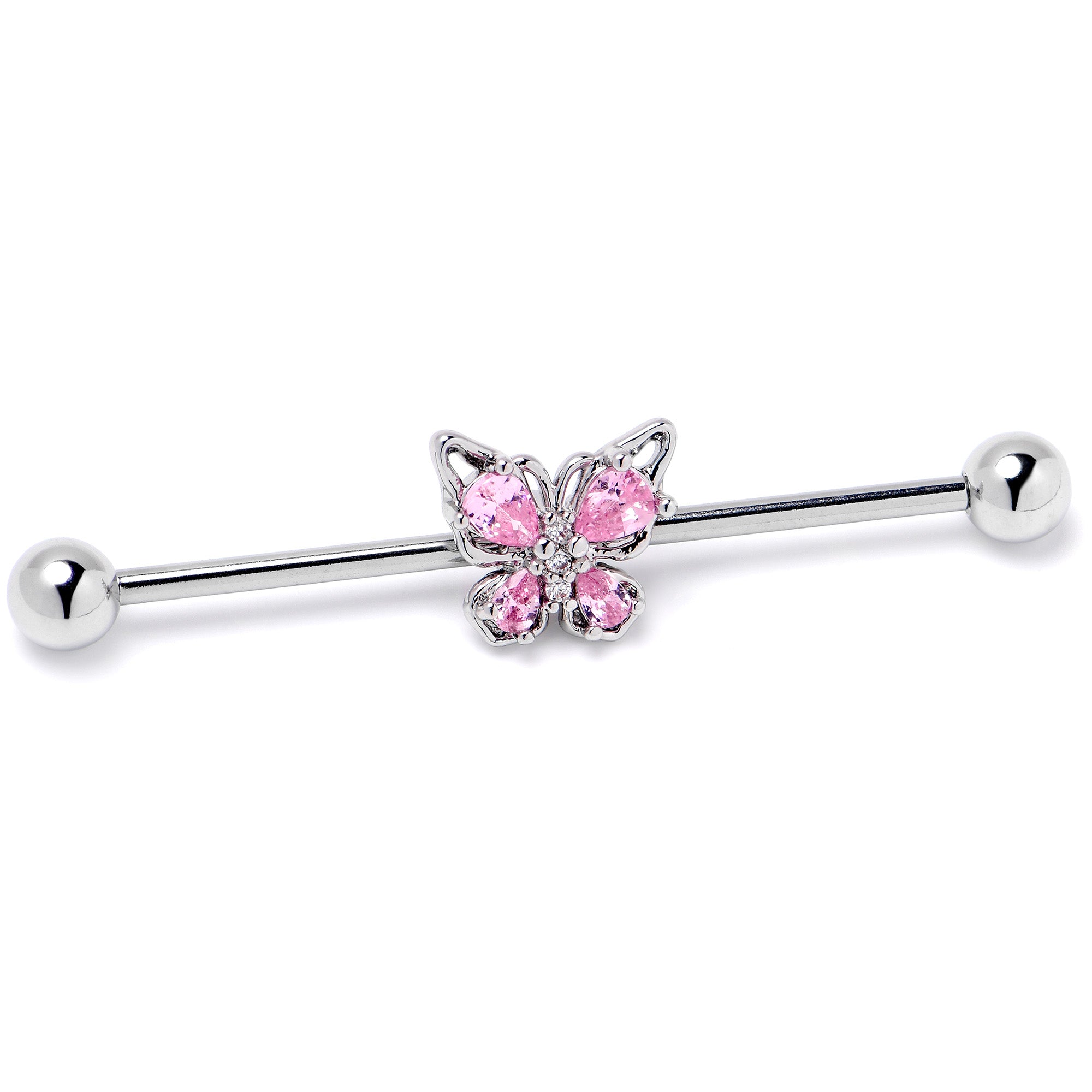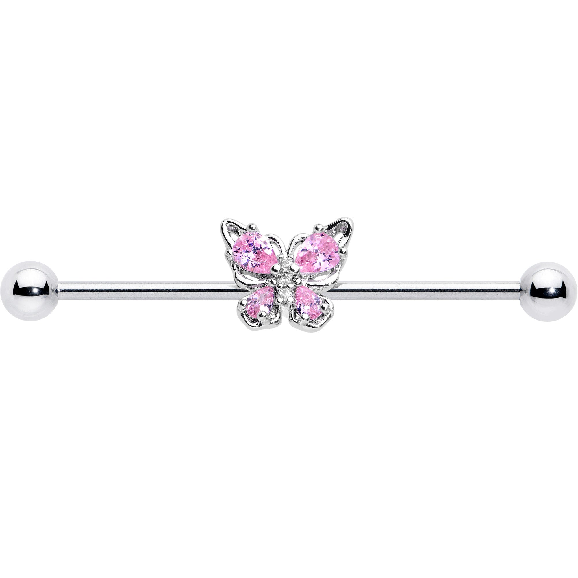 14G Pink Gem Baroque Beauty Butterfly Industrial Barbell 38mm