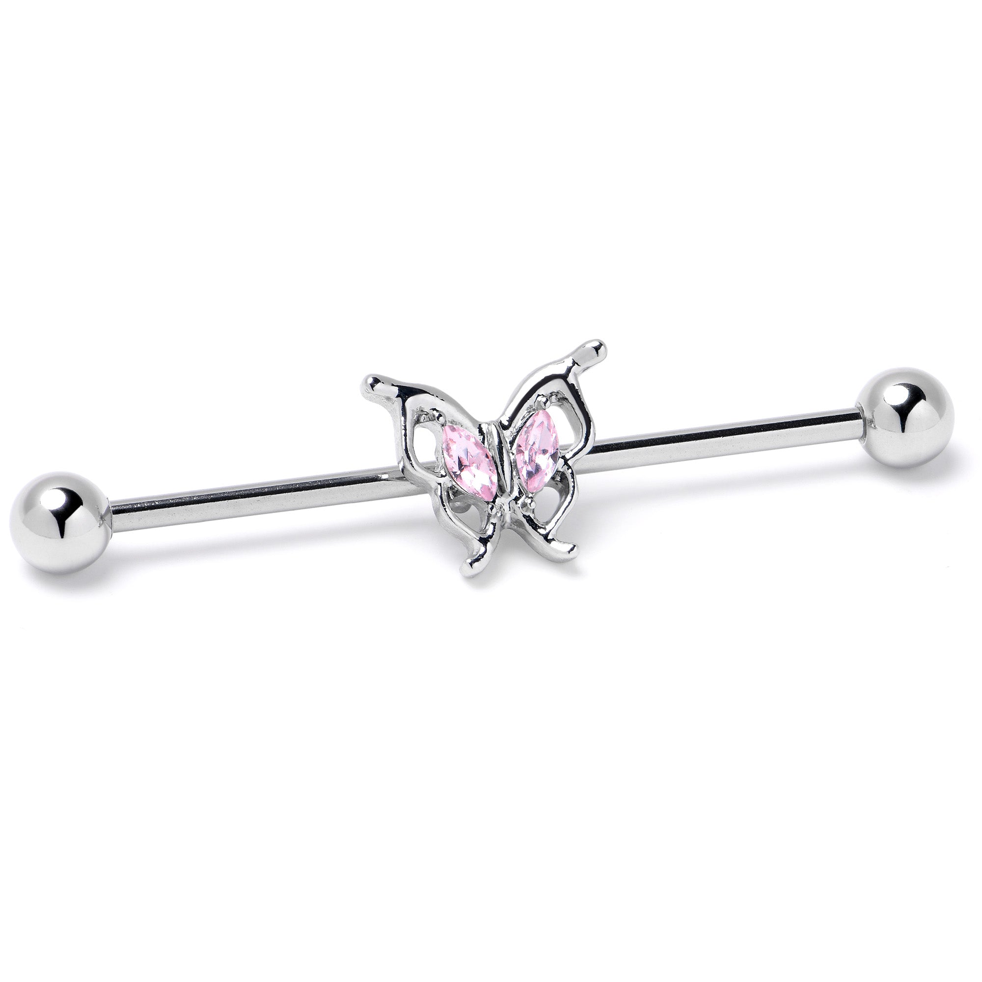 14 Gauge Pink Gem Fancy Fab Butterfly Industrial Barbell 38mm