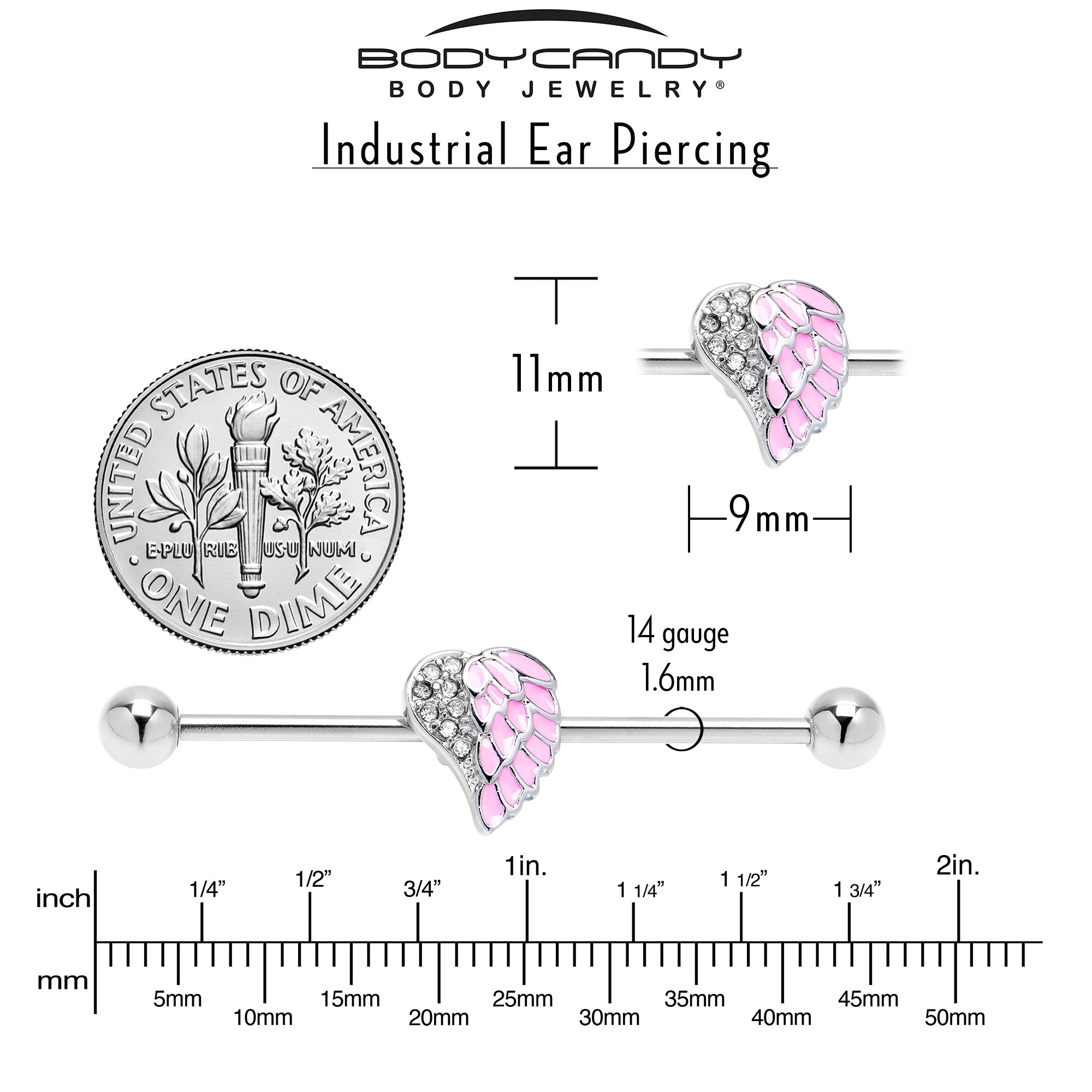 14G Pink Heavenly Heart Angel Wings Industrial Barbell 38mm