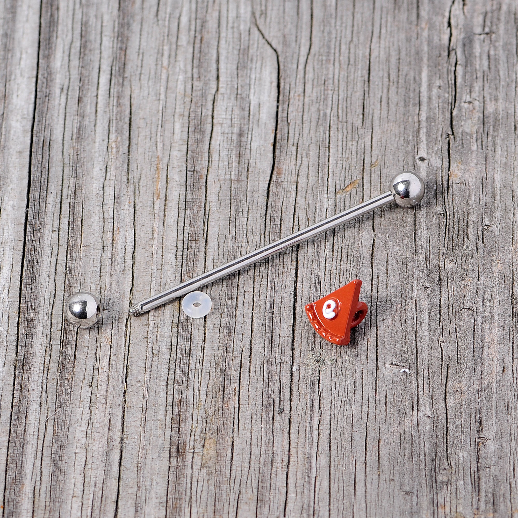 If you can't wait to walk around with a belly full of holiday cheer then you will love this 14 gauge industrial earring because it looks like a tasty treat! Made with a 1 1/2" durable 316L surgical grade stainless steel straight barbell, this barbell industrial features a moveable slice of yummy pumpkin pie charm that will make you yell a "Happy Thanksgiving" to everyone you meet!