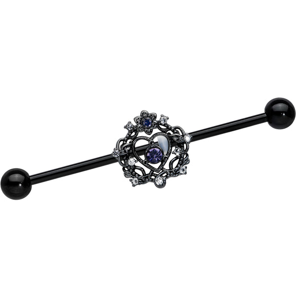 14G Purple Gem Black Regal Crown Heart Industrial Barbell 38mm