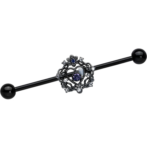 14 Gauge Purple Gem Black Regal Crown Heart Industrial Barbell 38mm