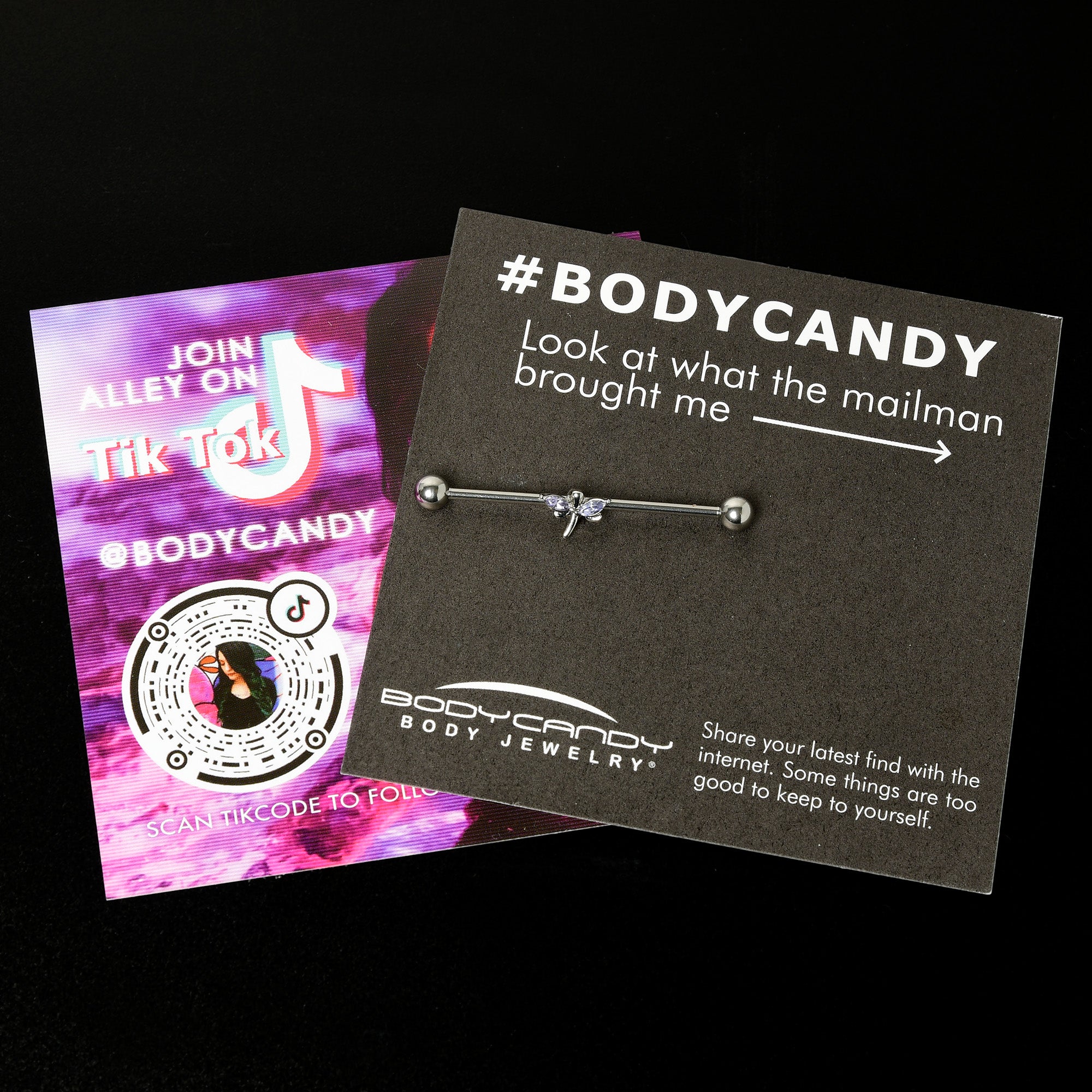 14 Gauge Purple Gem Simple Stylized Dragonfly Industrial Barbell 38mm