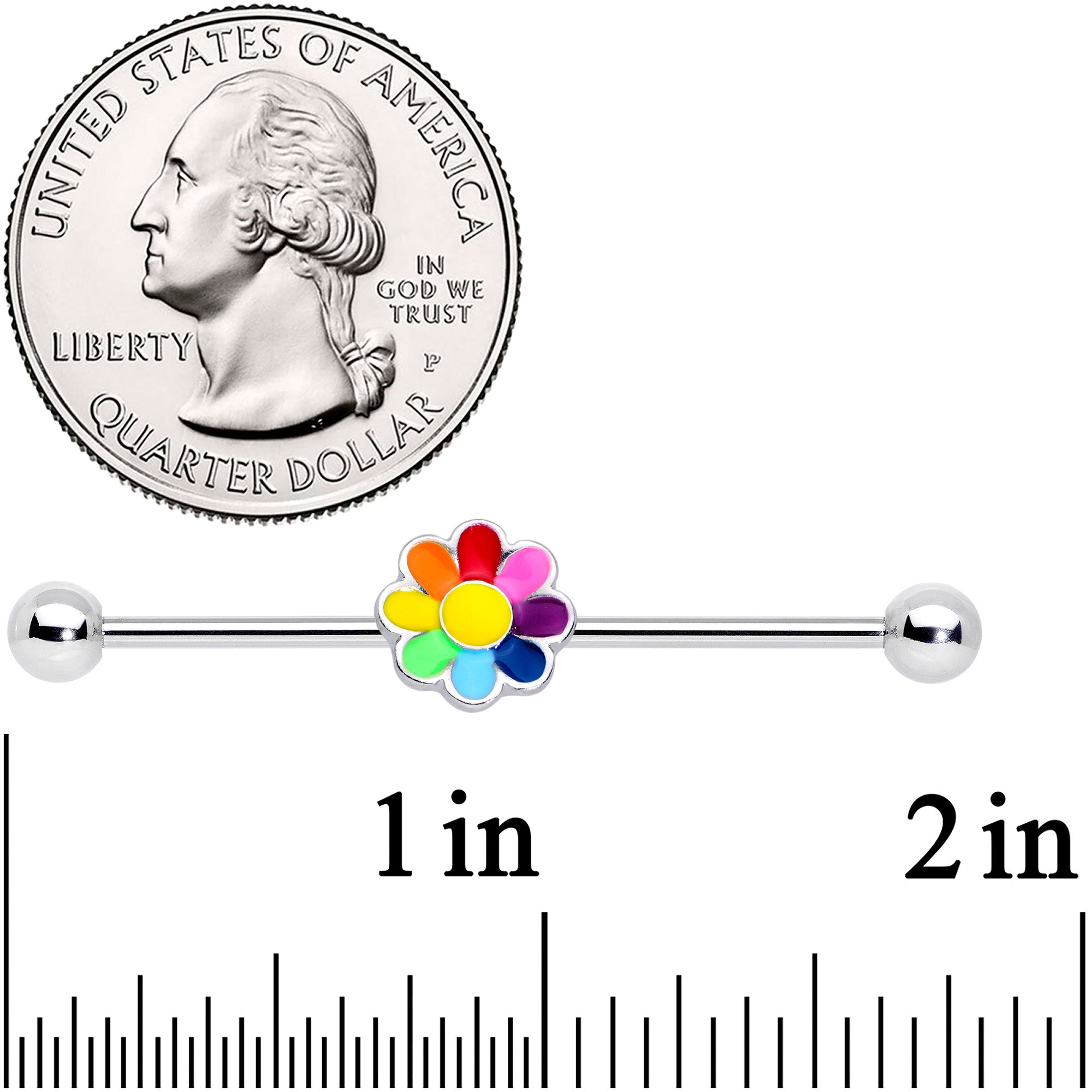 14G Rainbow Hippie Flower Industrial Barbell 38mm