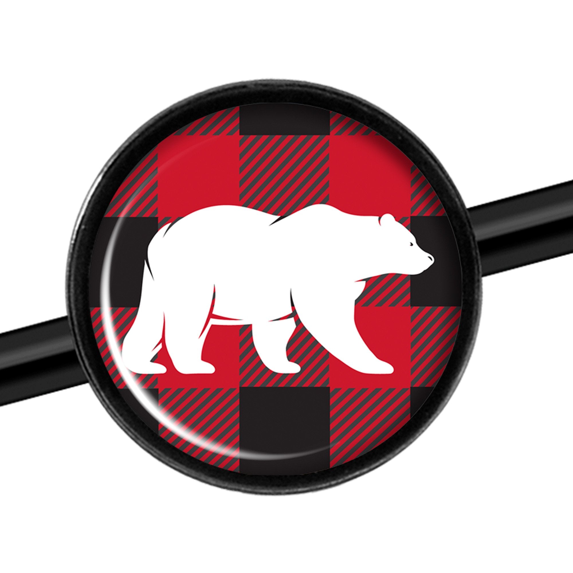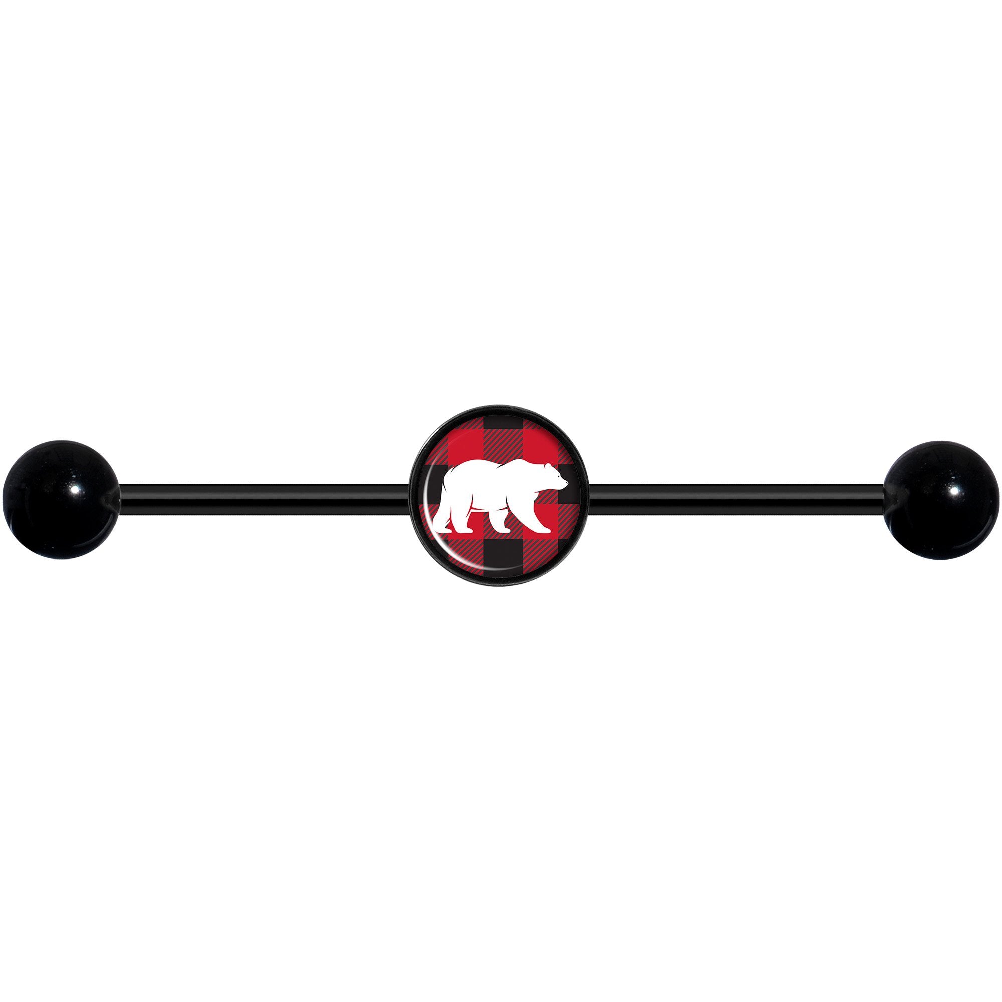 ,14 Gauge Red Black Plaid Polar Bear Black Industrial Barbell 37mm