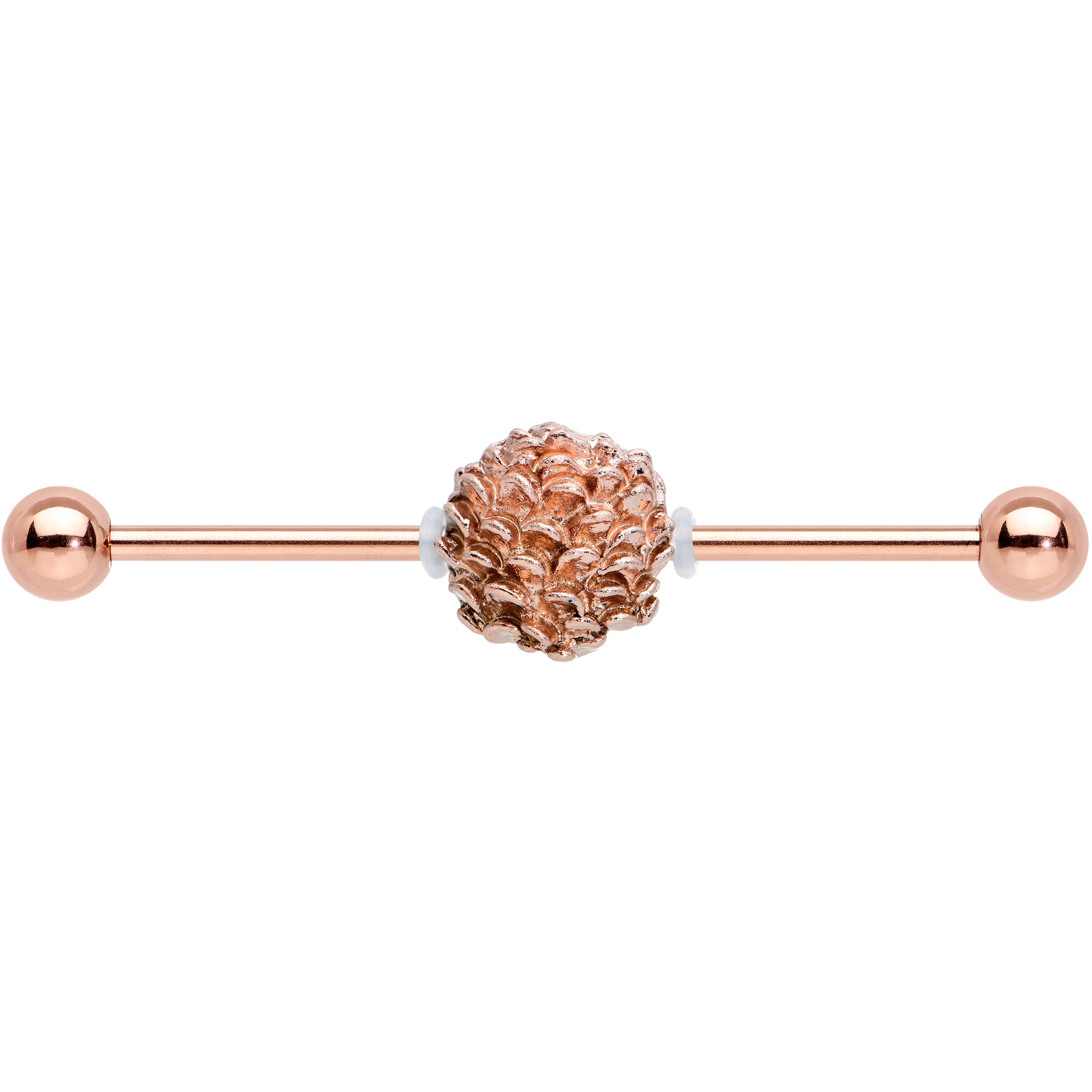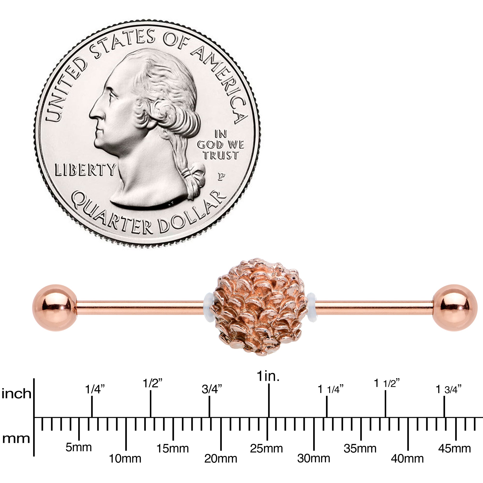 14 Gauge Rose Gold Tone Autumn Pine Cone Industrial Barbell 38mm