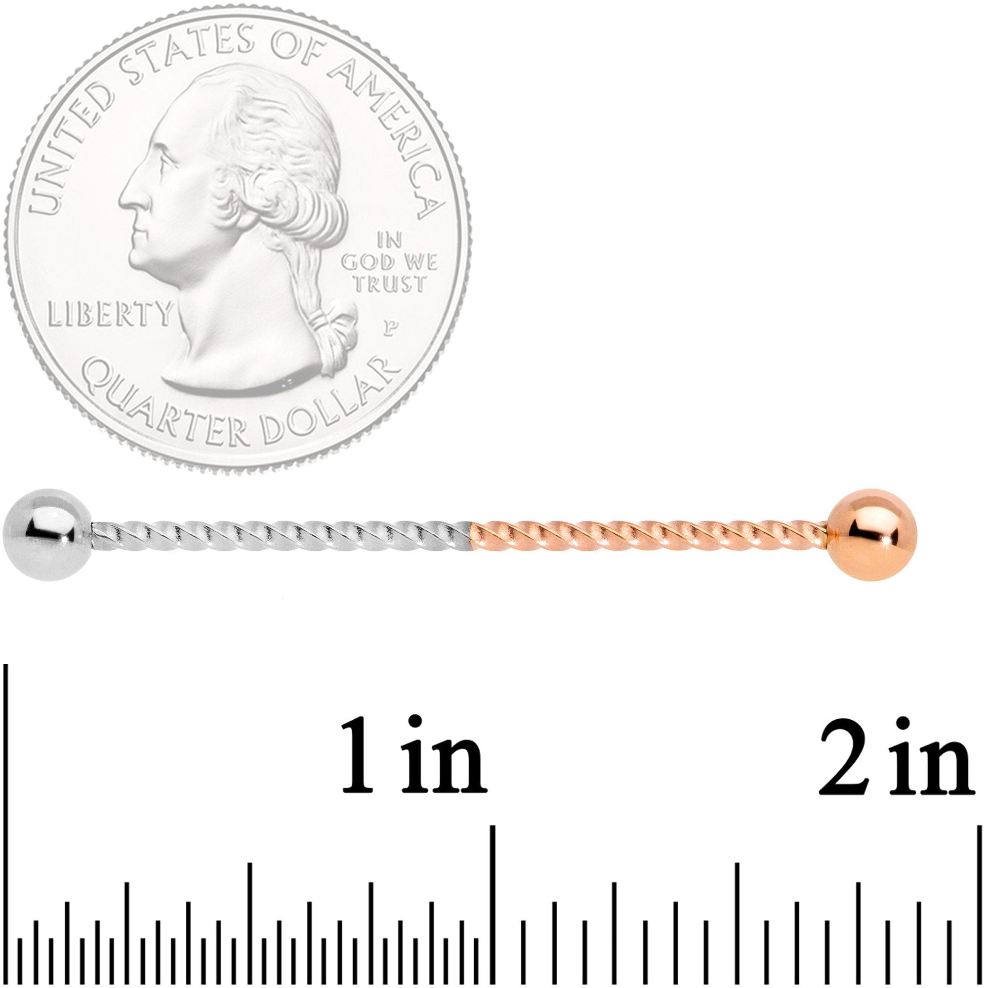 14 Gauge Rose Gold Tone Steel Two Tone Twisted Industrial Barbell 38mm