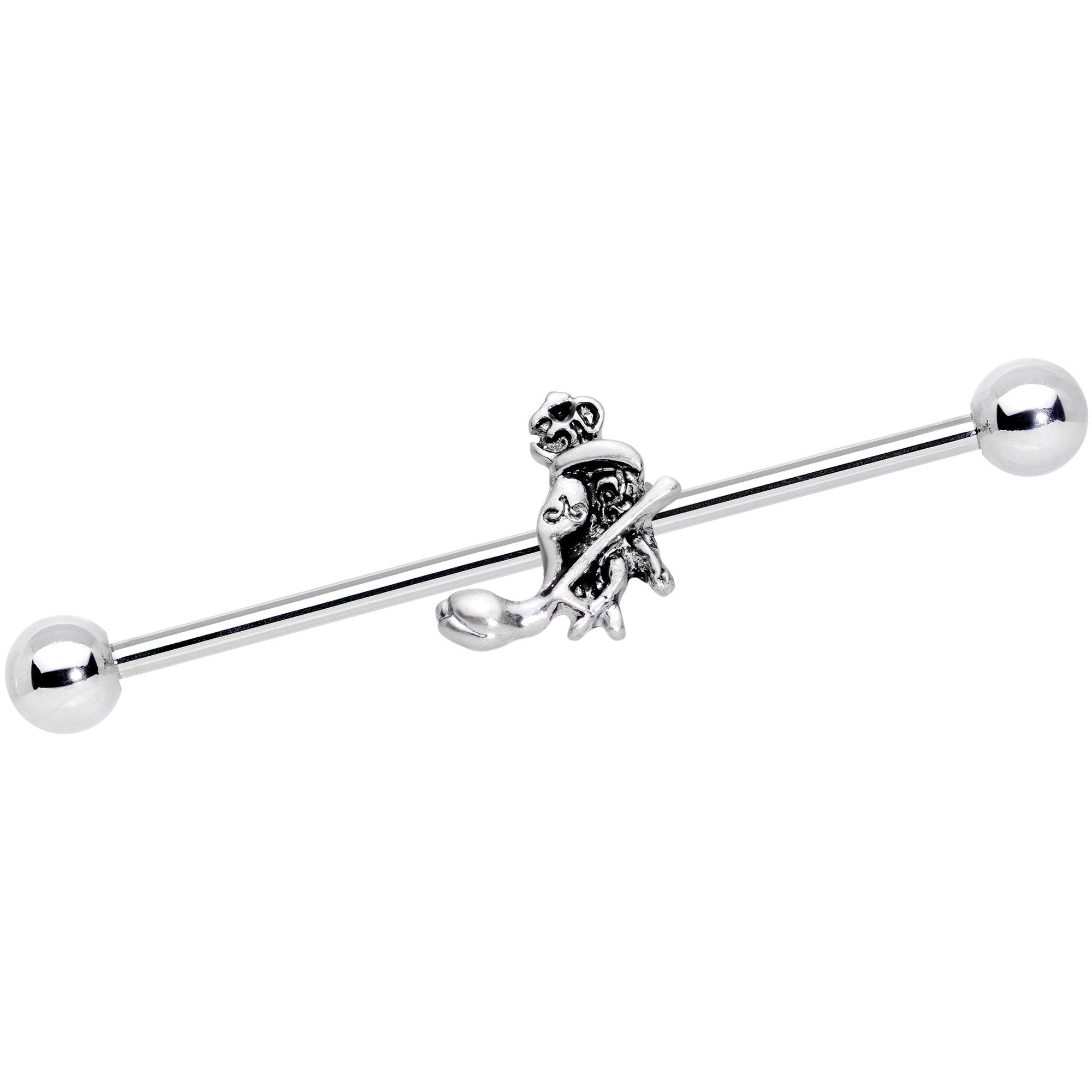 14 Gauge (1.6mm), 1 1/2" (38mm), 316L Surgical Grade Stainless Steel Straight Barbell, Moveable Charm, 5mm Ball Ends