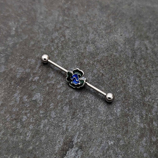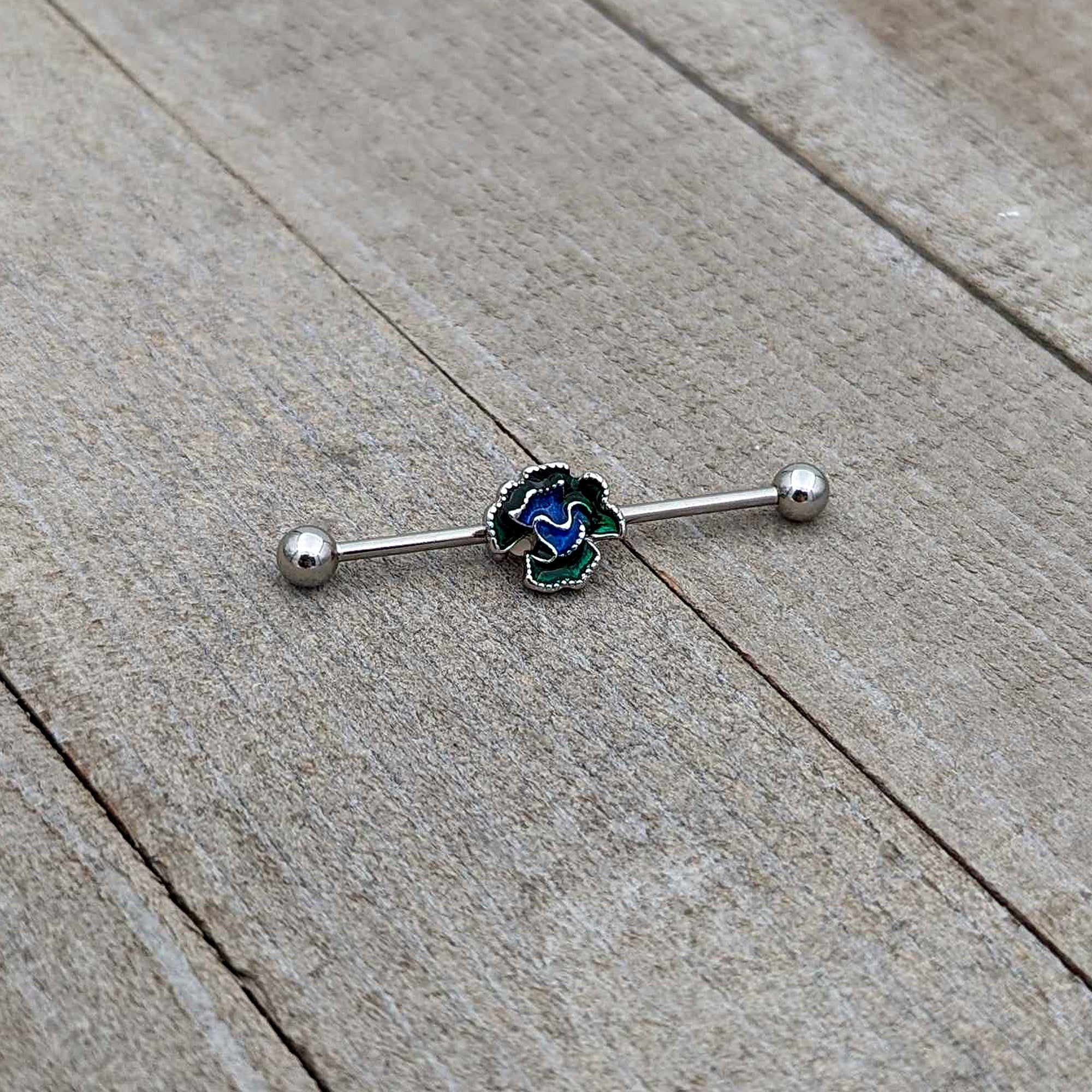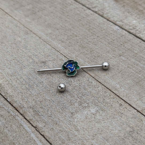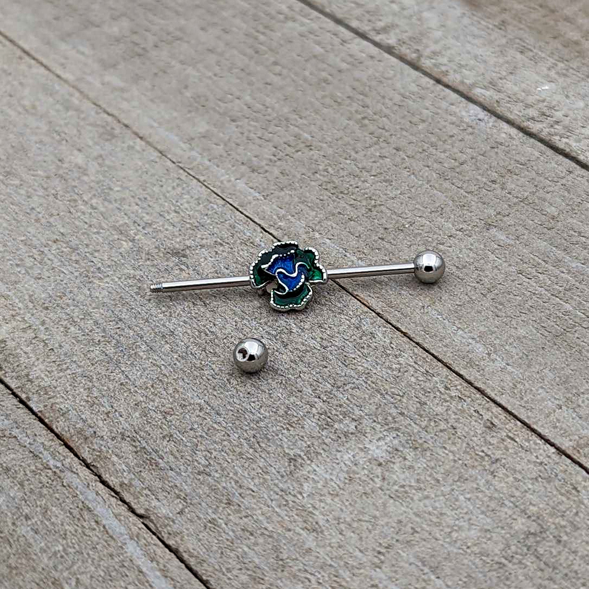 14 Gauge Spring Flower Green Blue Industrial Barbell 38mm